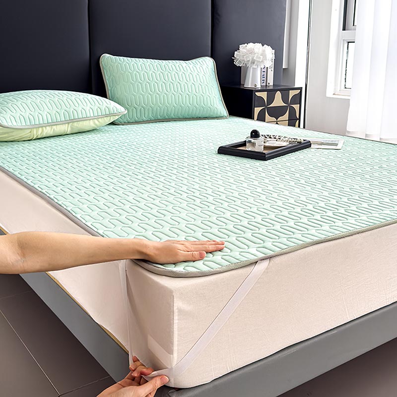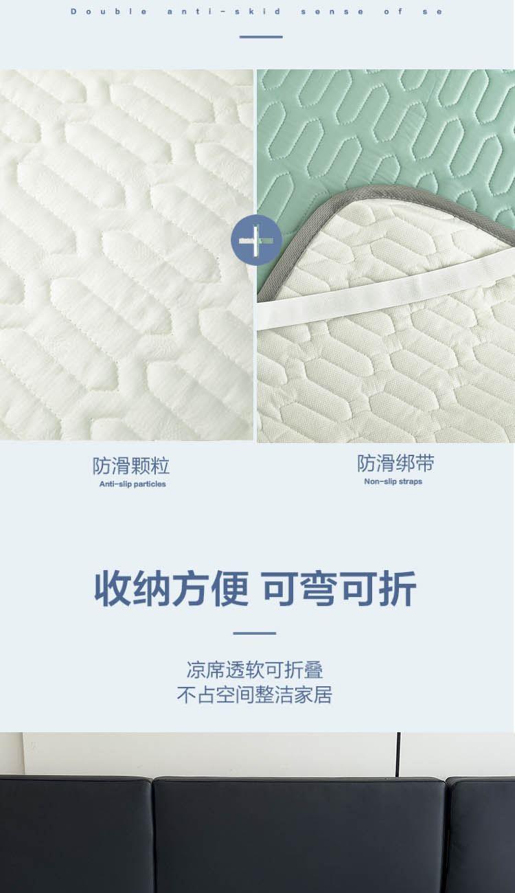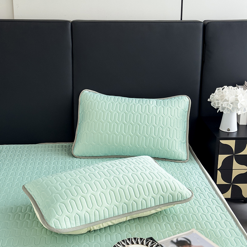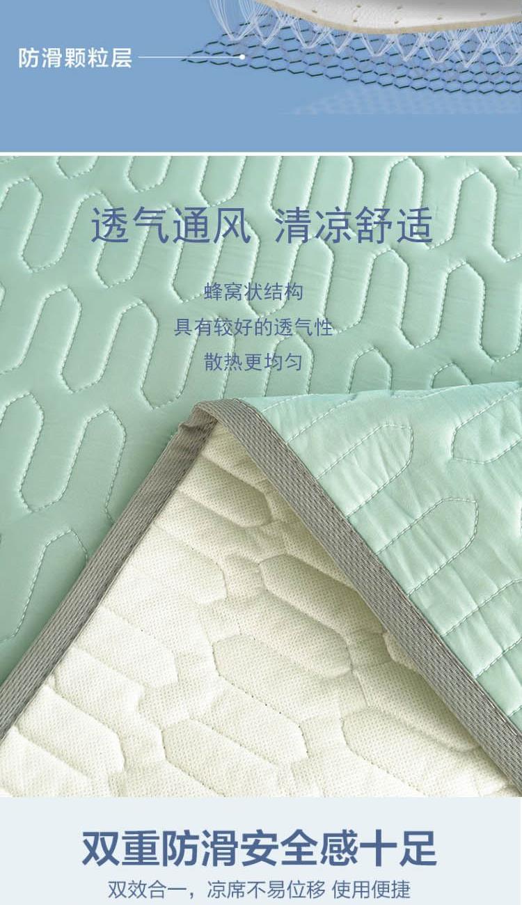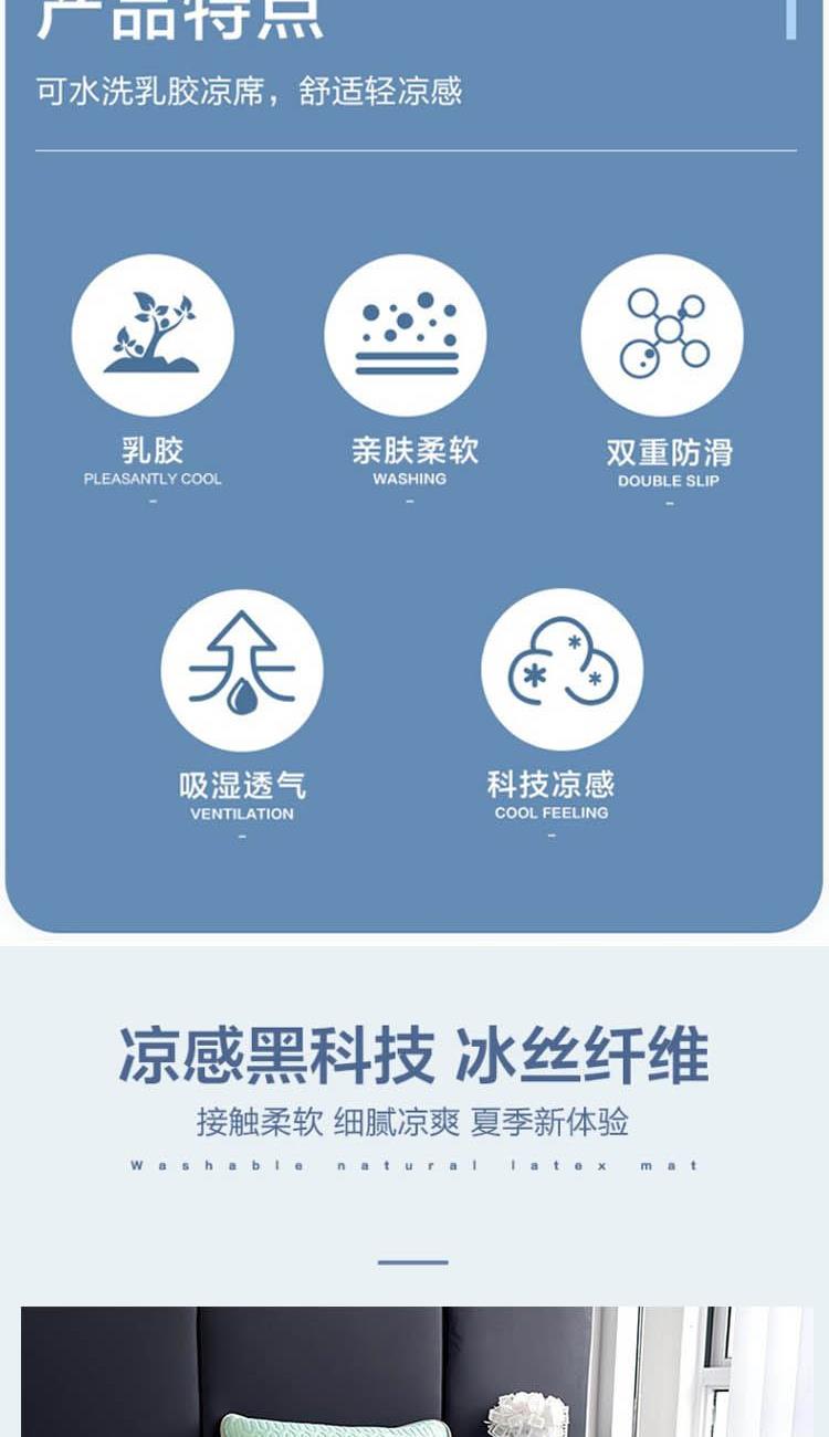 颜色:果绿 面料:凉感丝 填充:整张乳胶 底层:防滑滴塑 凉席*1 :180*200cm 枕套*2: 48*74 cm 包装方式:无纺布袋 包装尺寸: 480*360*120mm 卖点: 1、这是一款纯天然面料,舒适,冰感,防螨,整张乳胶,不会变型! 2、可水洗或轻柔机洗 乳胶保护舒适有支撑,释放90%骨骼压力,翻身无感知。呵护脊椎,促进睡眠舒适。