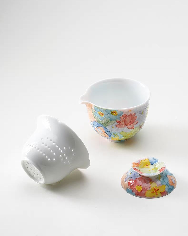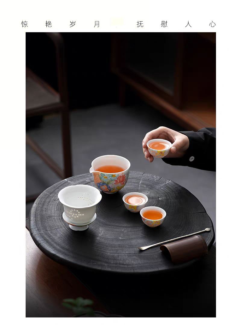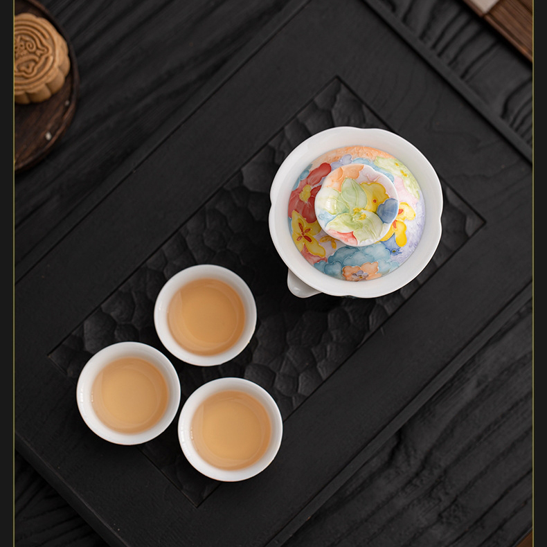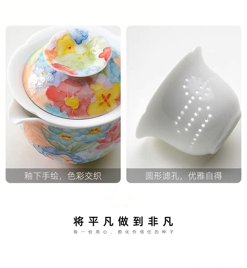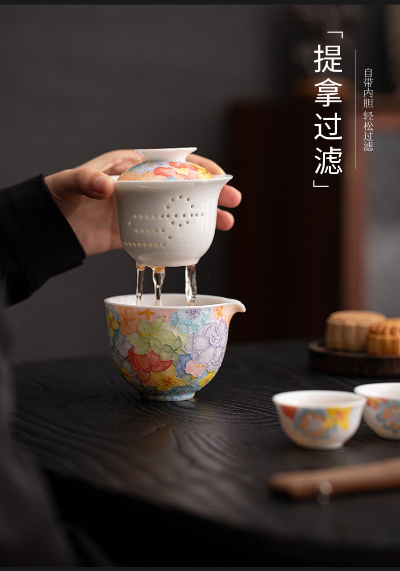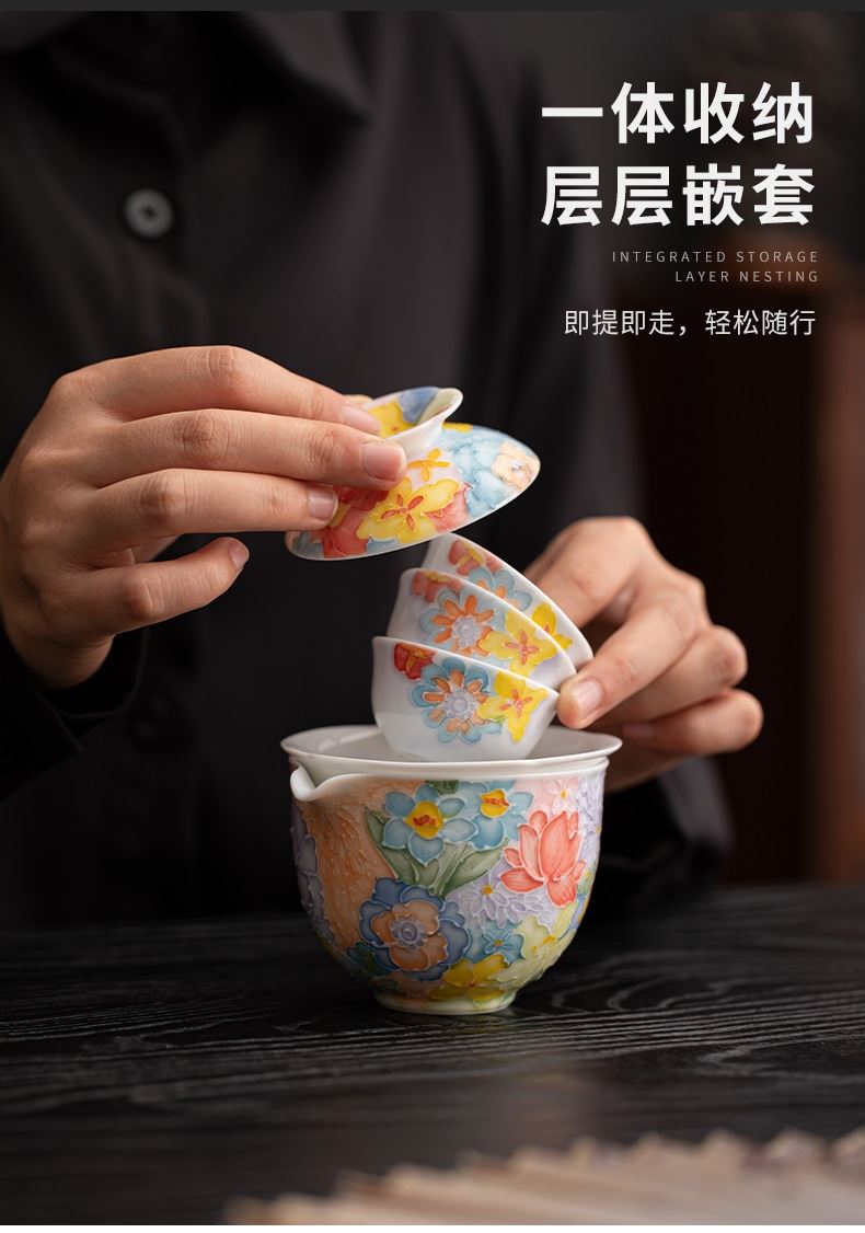 尾桥下窑手绘万花满彩釉下旅行茶具套装便携商务会议伴手礼赠品