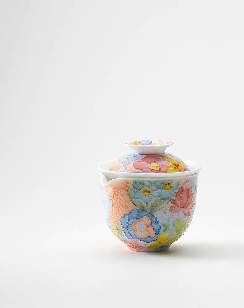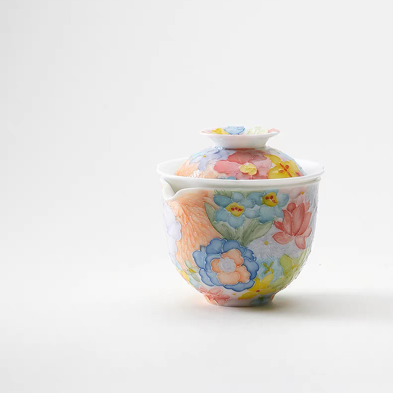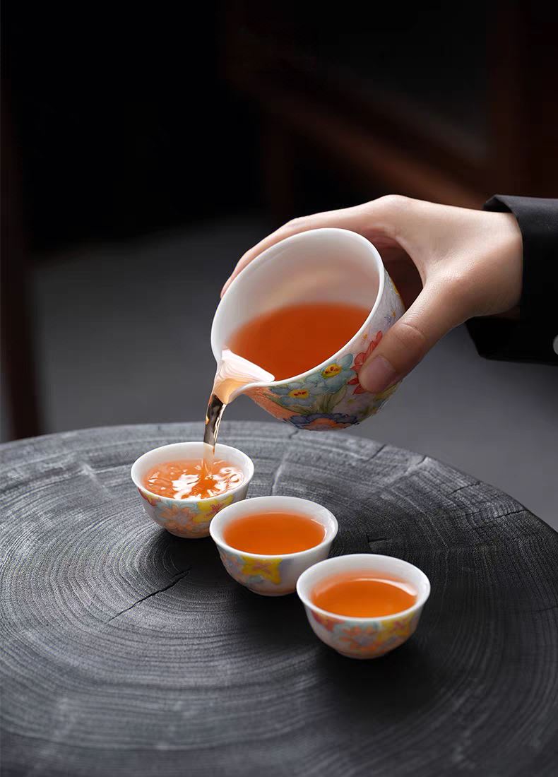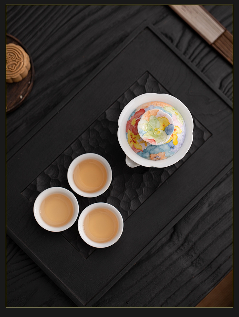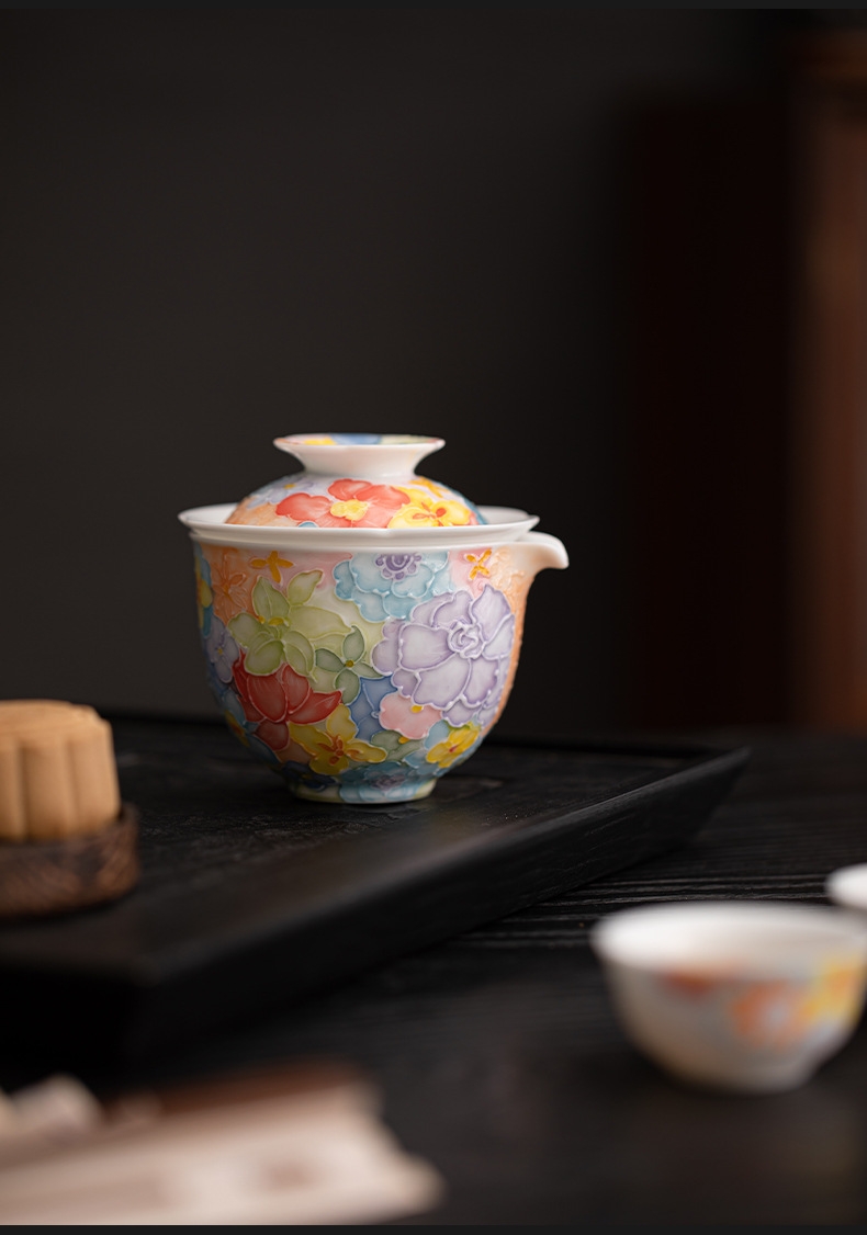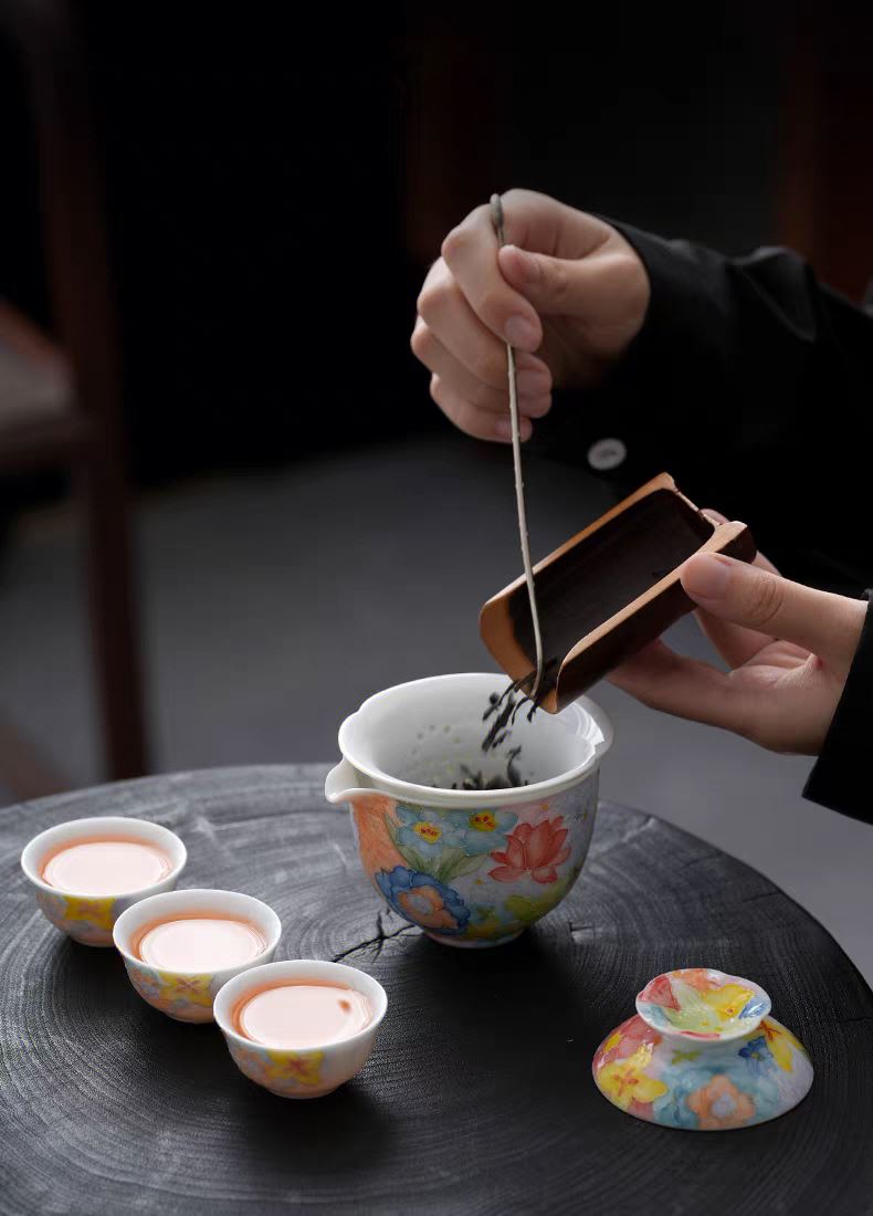 尾桥下窑手绘万花满彩釉下旅行茶具套装便携商务会议伴手礼赠品