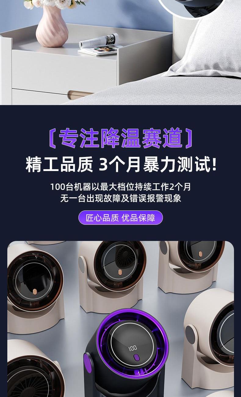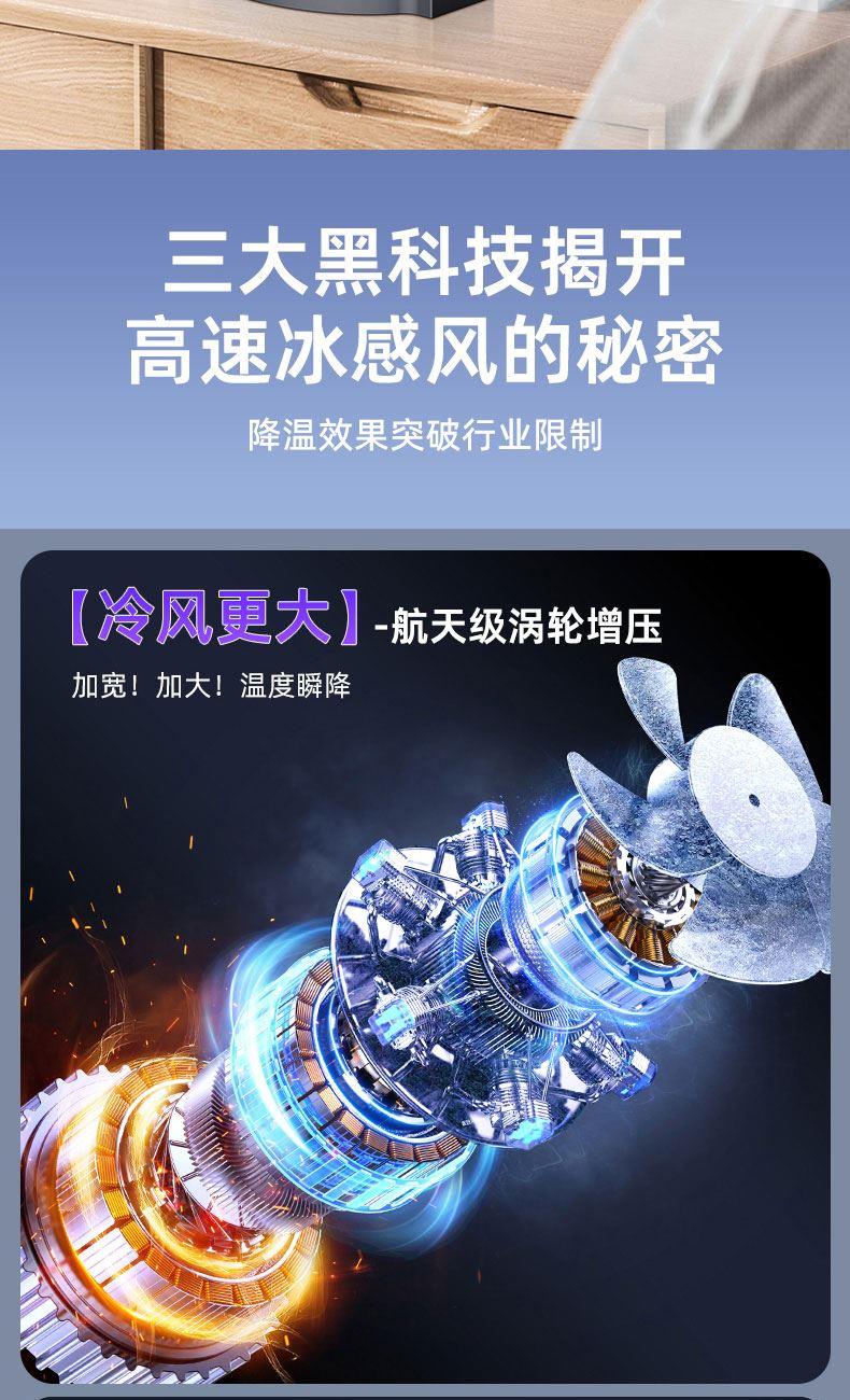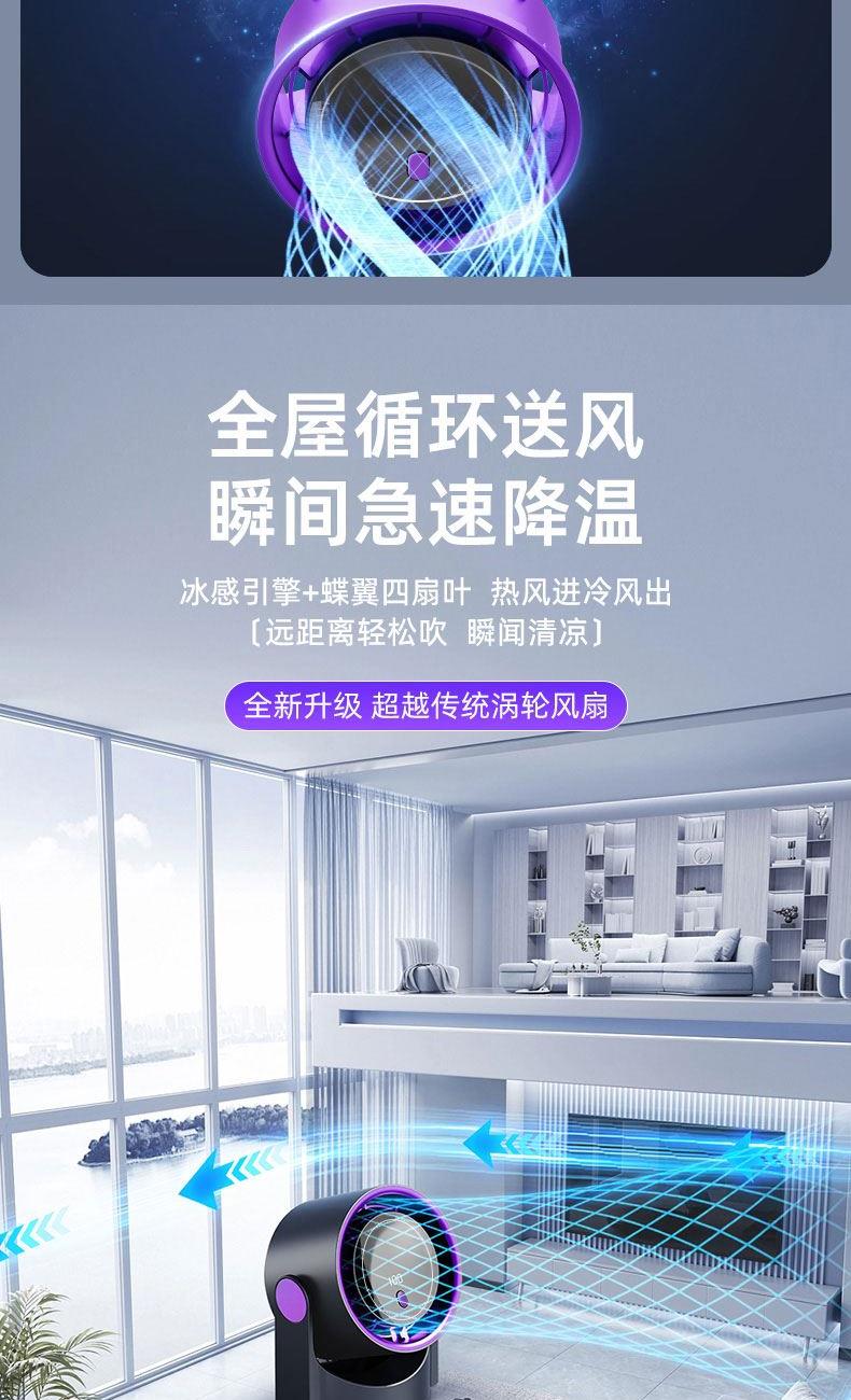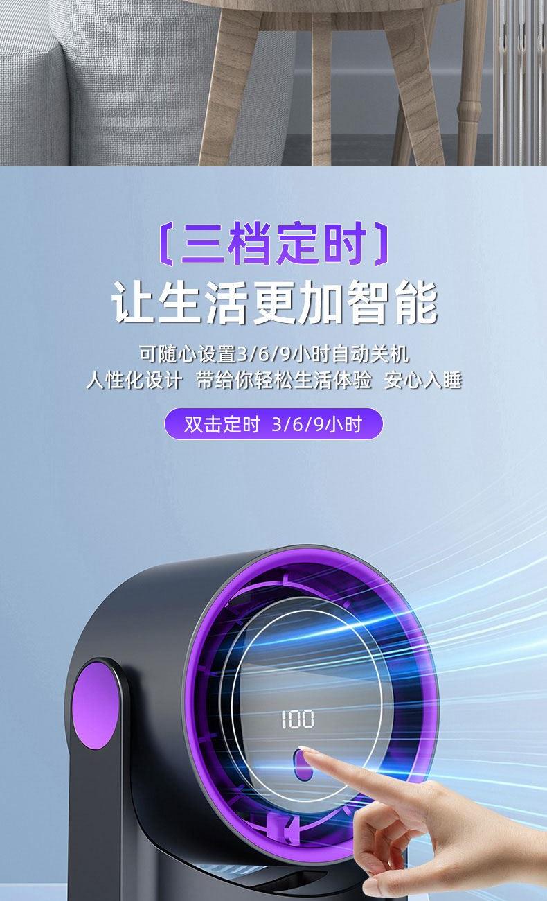 产品颜色:灰紫色/米白色 电机类型:无刷电机 额定电压:5V 2A 外壳工艺:ABS 噪音:36dB(A)以下 是否内置电池:内置电池 内置电池容量:1200mAh 包装体积:16*9.8*18.5cm 产品净重:0.35kg 续航时间:1-3h(含) 电源方式:USB 有无数显:有 操作方式:普通按钮 1、全新升级100档调速,科技感数显和按键交互,单击切换,5档风速,模式满足日常使用 2、冰感引擎+蝶翼四叶扇 热风进冷风出 3、多角度送风,上下可手动调,支持俯仰角360°调节