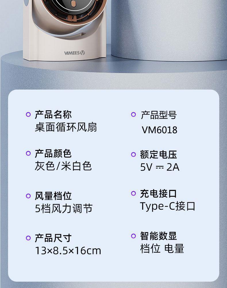 • 维米仕(vimees)无线户外桌面涡轮风扇VM6018