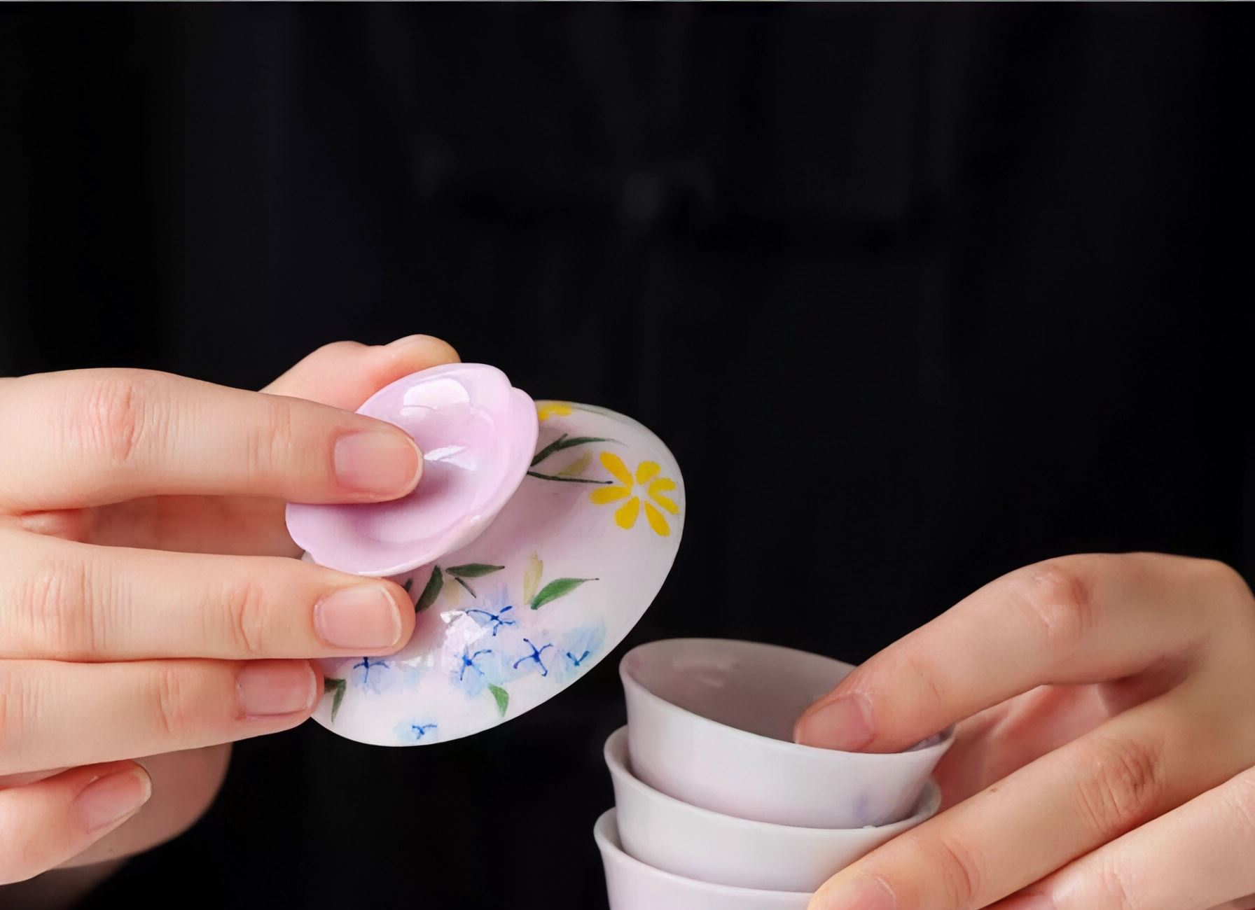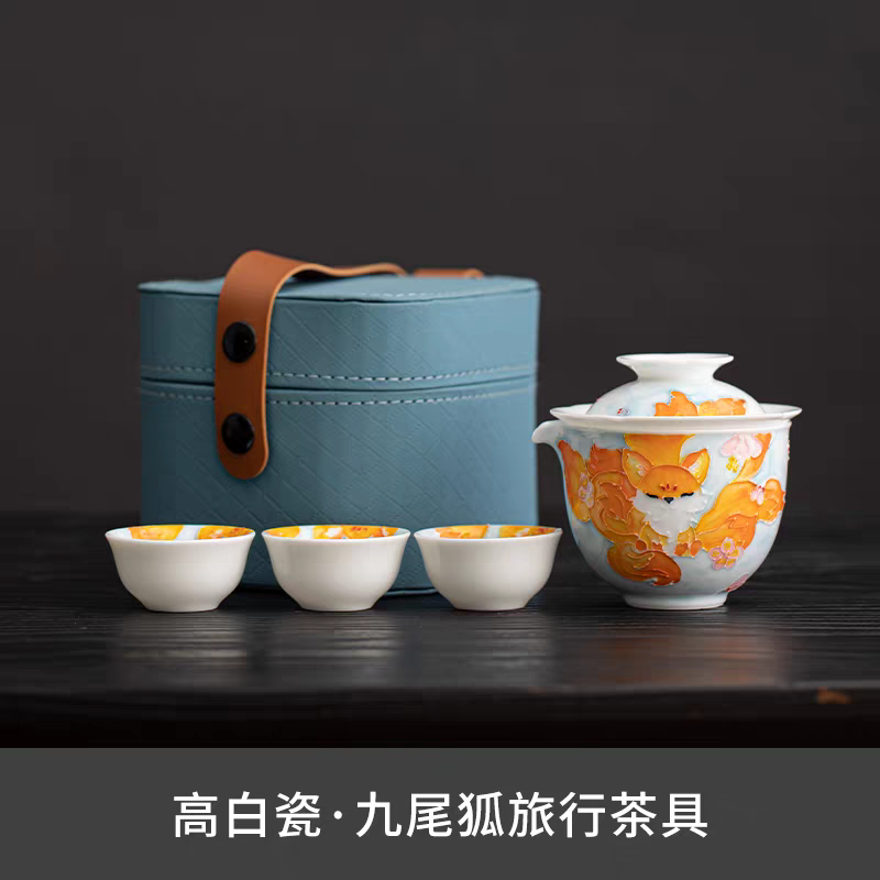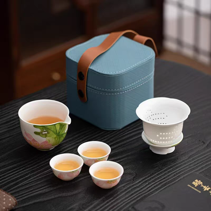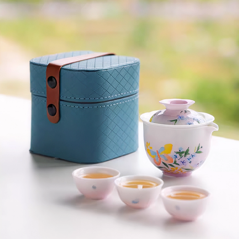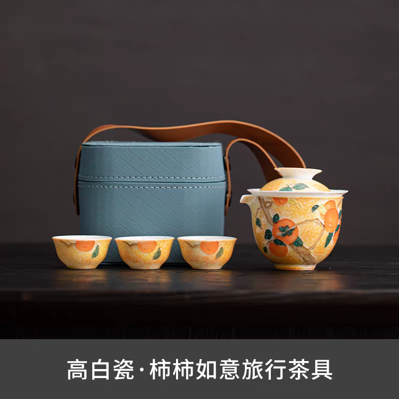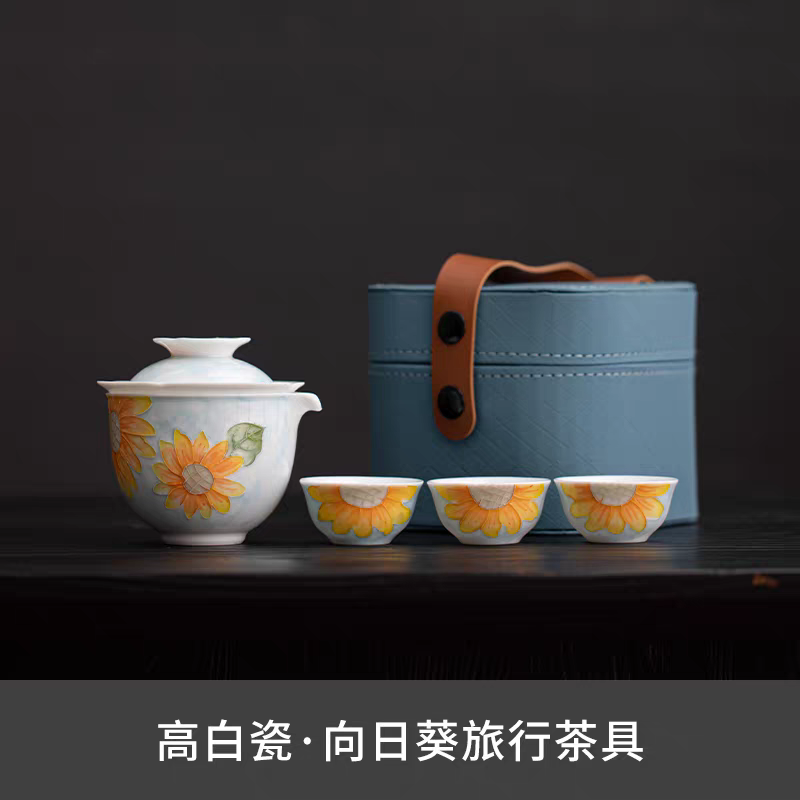 尾桥下窑手绘釉下彩浮雕花卉旅行便携茶具套装商务会议开业礼品
