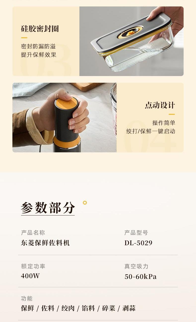 东菱真空保鲜佐料机+S号抽真保鲜空袋DL-5029家用备餐