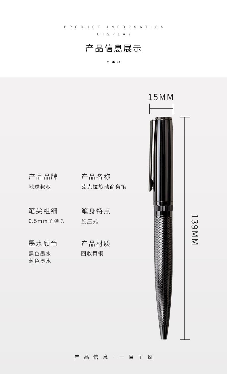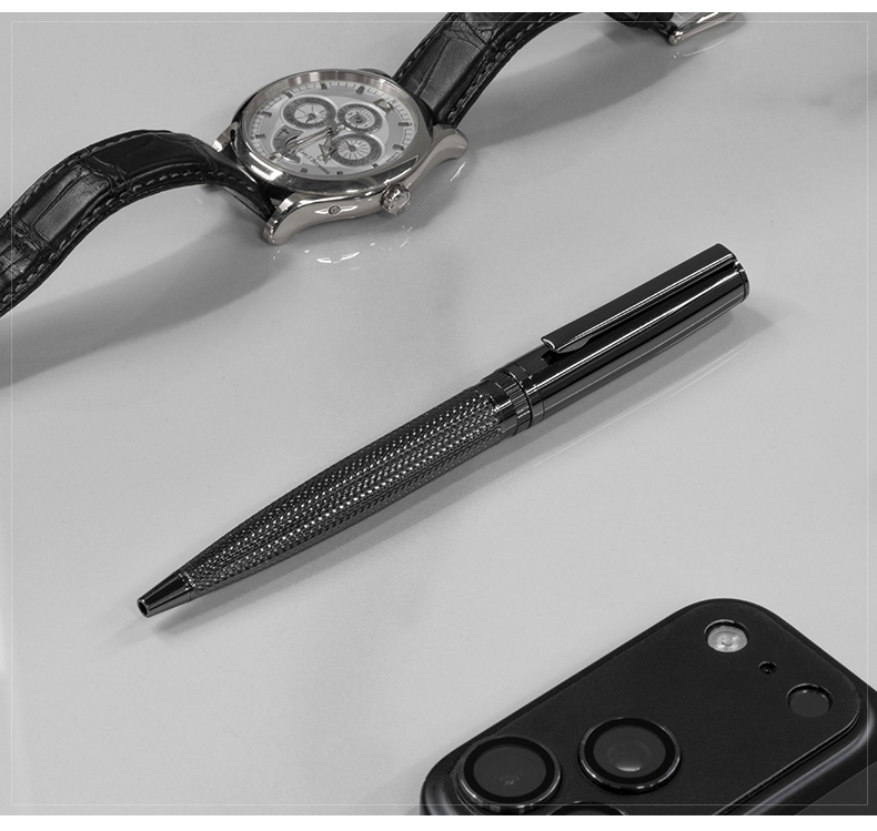 · 由回收黄铜制成,它具备稳定的重量、舒适的手感,以及书写韵味 · 笔身采用铬镀处理,其设计既彰显大气感,又充满奢华 · 精致的钻石纹路设计,舒适的握持感 · 笔帽采用钢笔笔帽设计,易于收纳 · 配备德国进口的高品质墨水,书写流畅,告别晕染困扰 · 笔尖采用瑞士制造的TC圆珠笔头,优质碳化钨笔尖,耐磨出墨流畅 · 拥有国际RCS回收环保认证标志 笔尺寸:139 x 15毫米