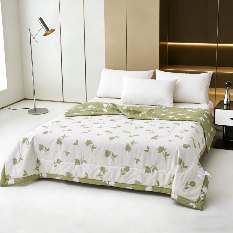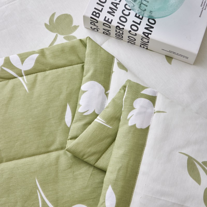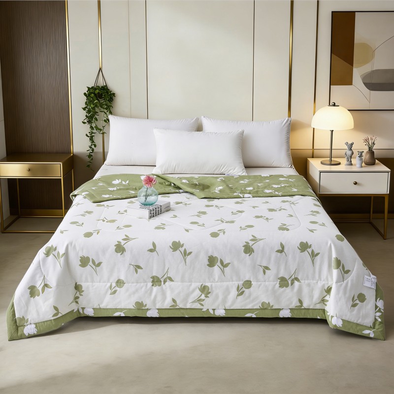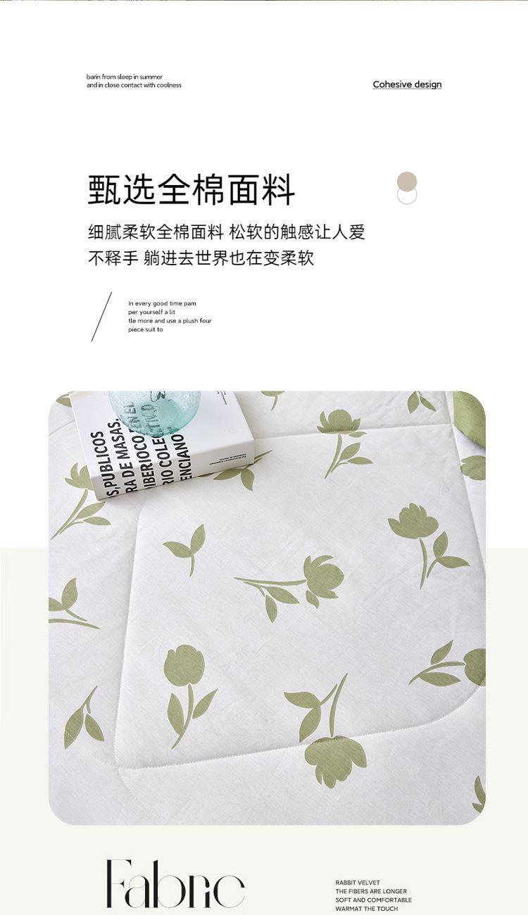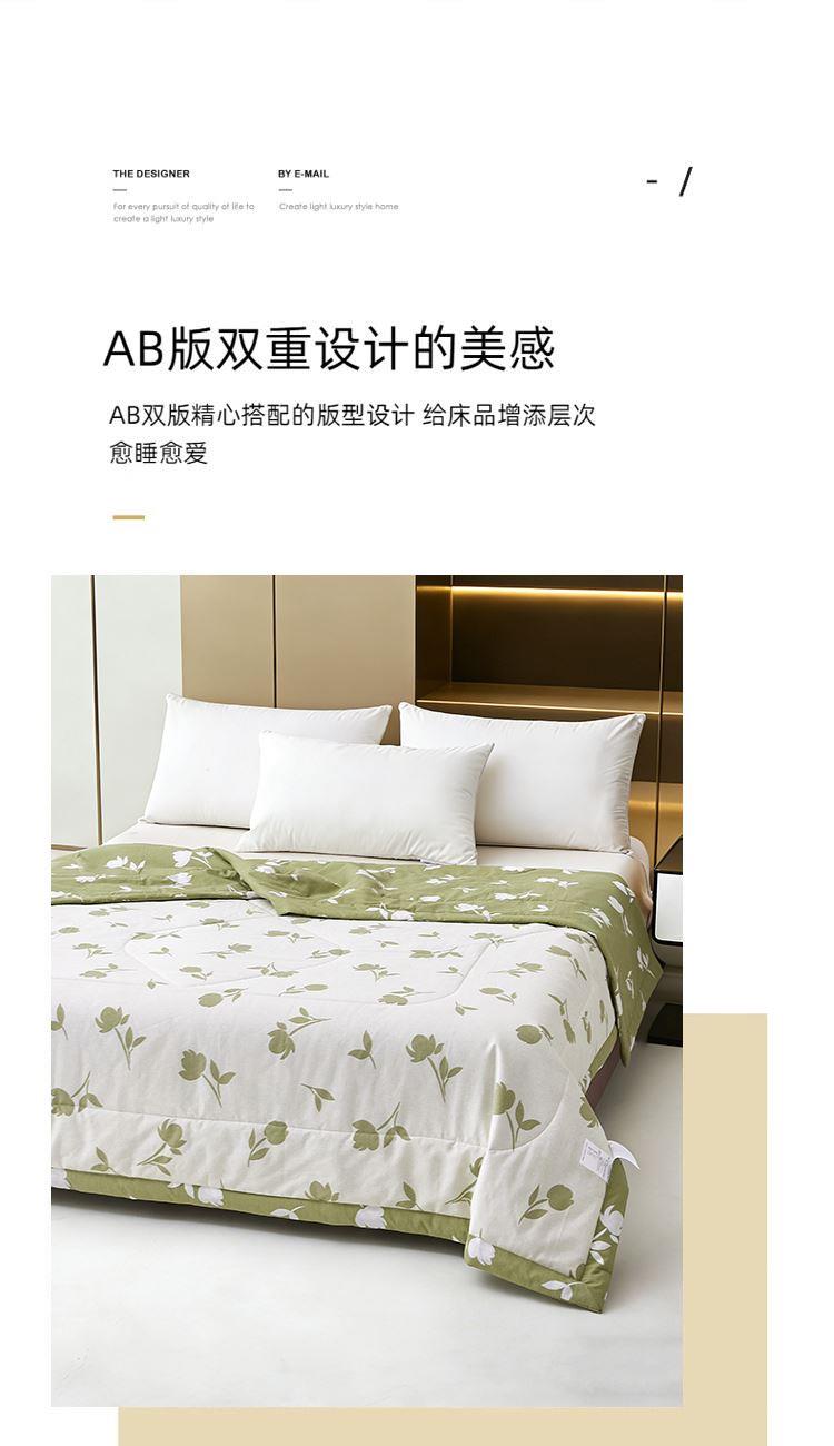 规格:150*200cm 面料:全棉 填充:羽丝棉 重量:1100g 执行标准:GB/T22796-2021 安全类别:GB18401-2010 B类 1.纯棉材质:采用优质棉花,柔软亲肤,透气性好,适合敏感肌肤,提供舒适的睡眠体验。 2.高透气性:棉纤维结构疏松,空气流通顺畅,避免闷热。