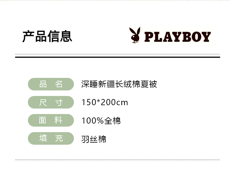 花花公子深睡新疆长绒棉夏被PB-25YZ124