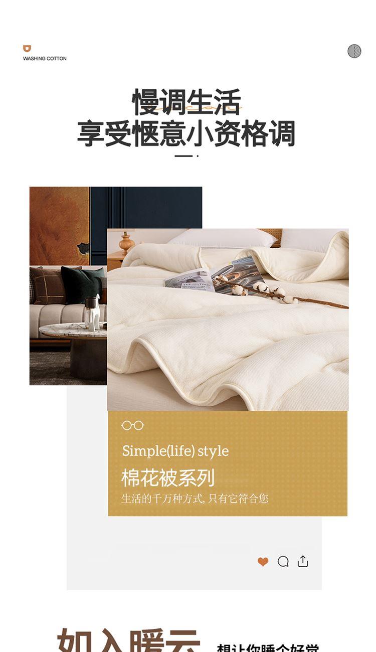 1:升级棉花 棉感舒适 技术升级,舒适生活,去除棉花中的杂质温和无异味,带来暖暖的味道 2:蓬松度提高80%,整张新疆棉花填充轻盈不易压身,贴合身体曲线,给您温暖睡眠 3:鱼鳞网设计,牢牢固定填充,不易跑棉,细致包边,针脚细腻,耐磨耐用 尺寸: 200x230cm5斤(可定做任意尺寸重量) 包装:礼袋
