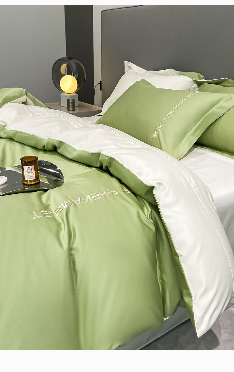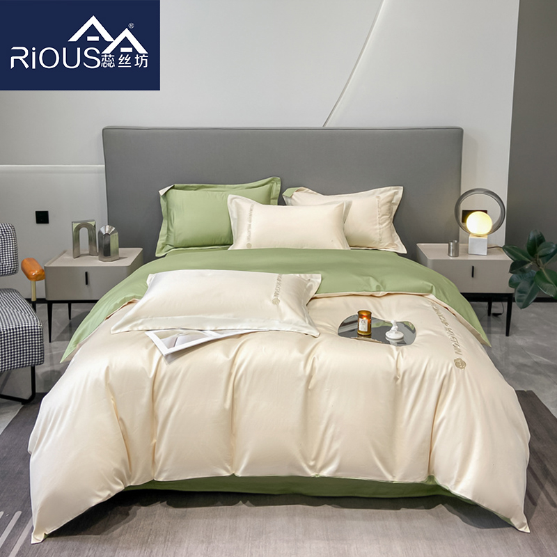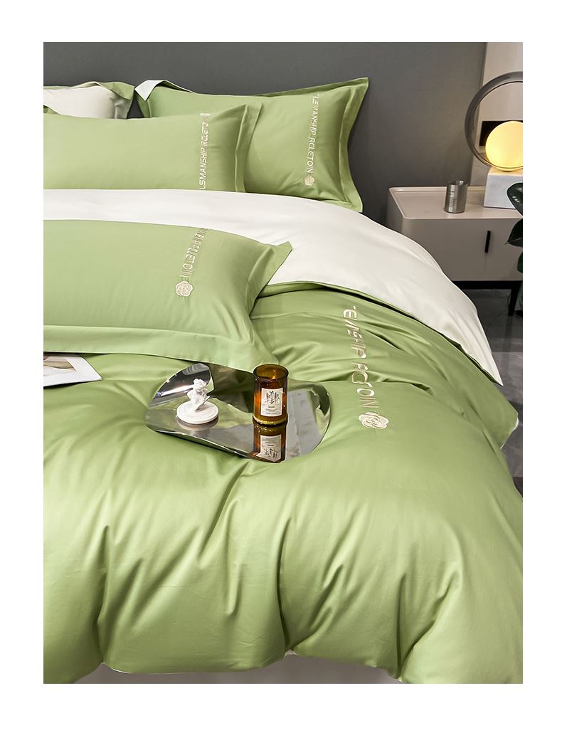规格:1.5米/1.8米床适用 被套200*230*1 床单245*245*1 枕套48*74*2 面料:聚酯纤维 花色:宾利蓝、梵星蓝、风铃兰、灰、海清、奶昔白、奶昔白-风铃兰、奶昔白-云川绿、浅豆沙、山灰、天空蓝、云川绿 面料自带凉感,丝滑有光泽,时尚简约刺绣工艺,素色AB双面,不同颜色垂顺好打理;A面纯色加上刺绣点缀/B面简约纯色,活性印染工艺 久洗如新;多种规格可选,床单适用性强,床笠款全包裹一拉一套,简洁居家轻松解决,根据需求选择。