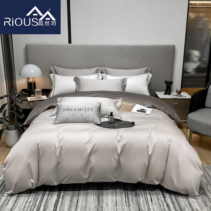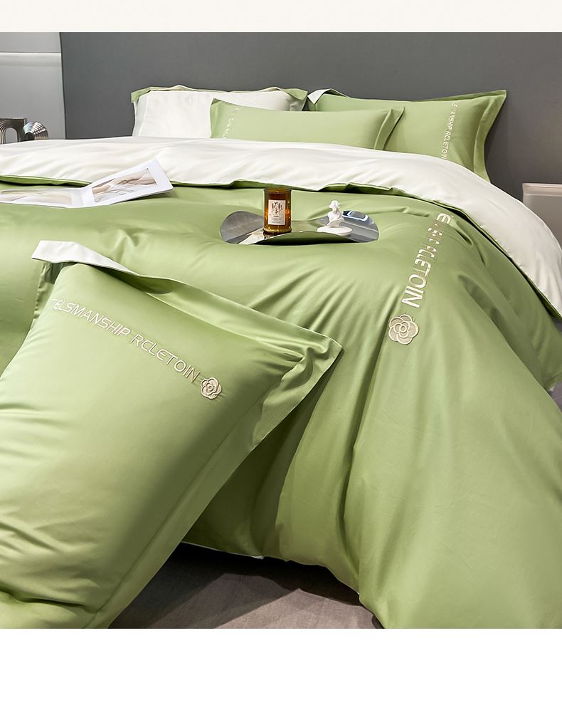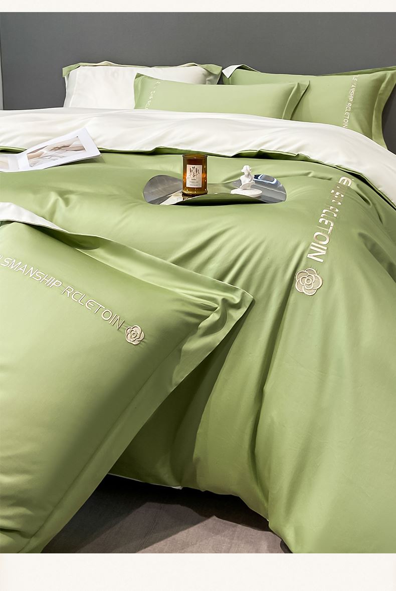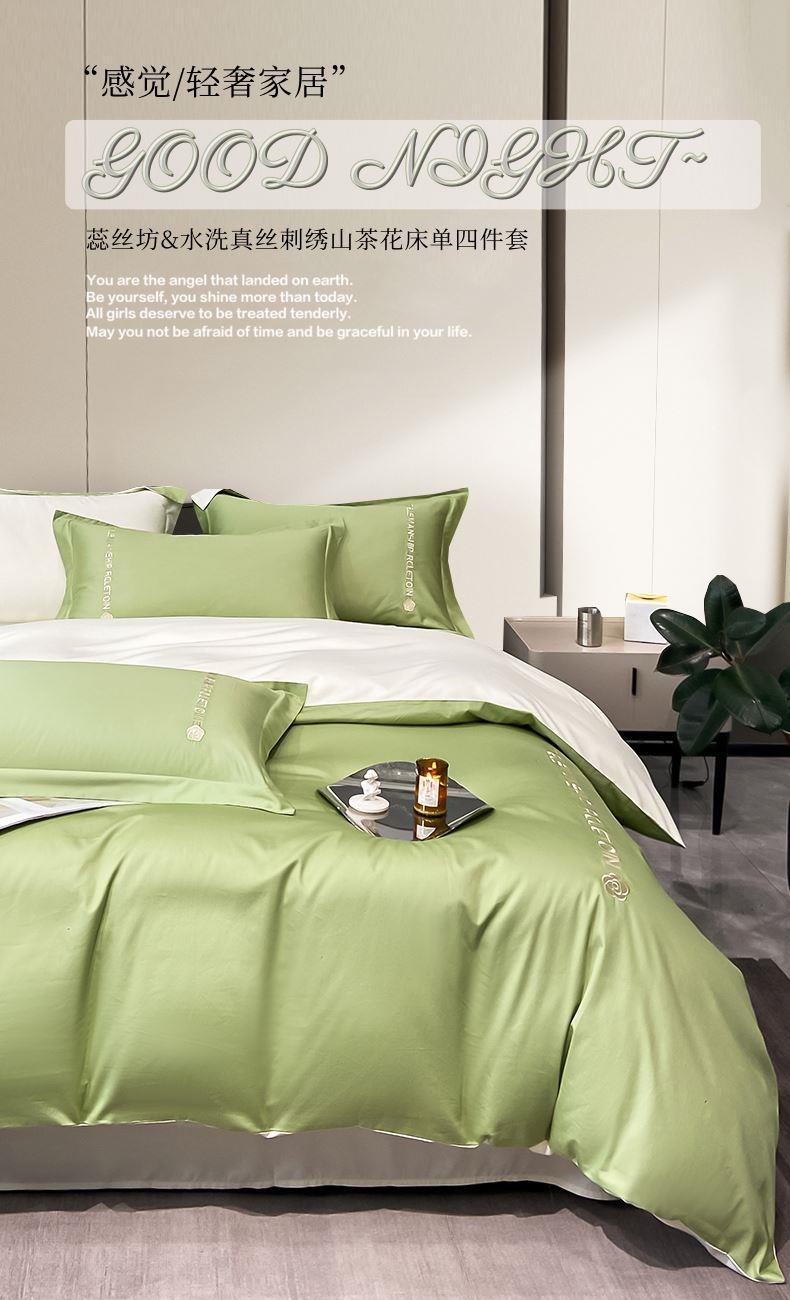 蕊丝坊家纺水洗真丝刺绣四件套-山茶花