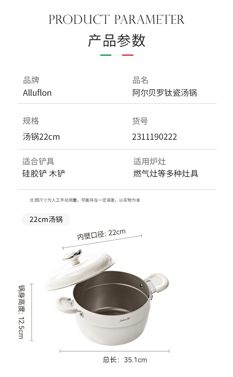 Alluflon阿路弗仑阿尔贝罗钛瓷汤锅22cm