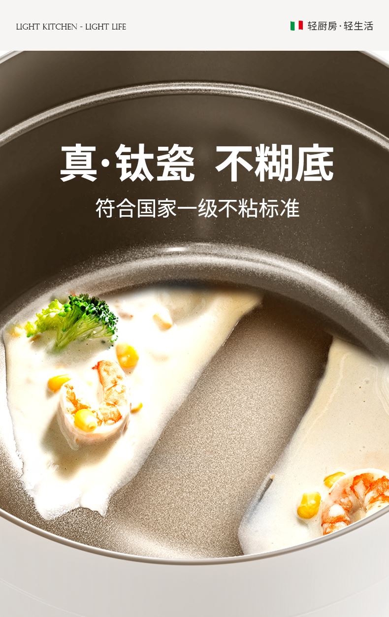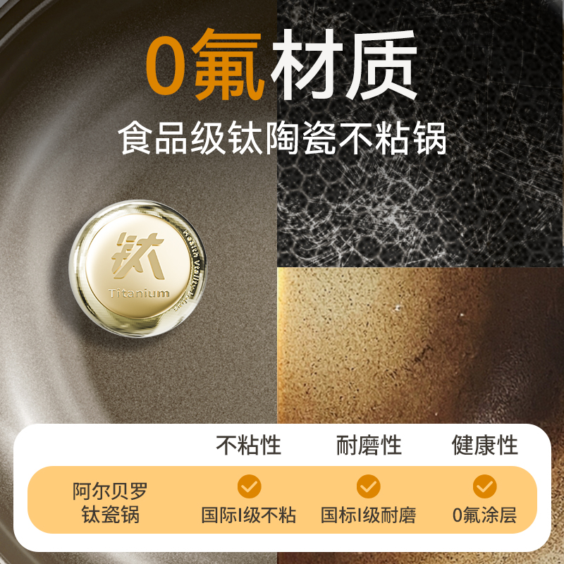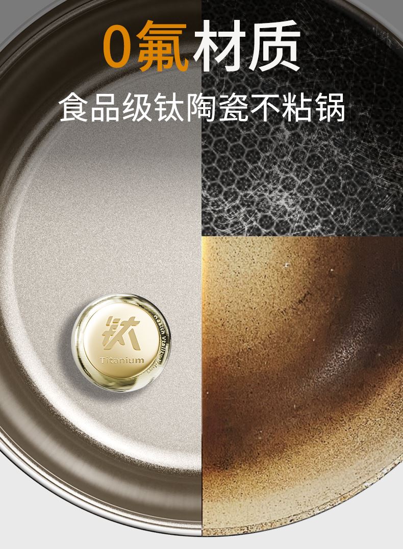 规格:22cm 材质:铝合金+陶瓷 单个尺寸:390*275*168 1、国标1级不粘,钛不粘不糊底 2、钛瓷革新材质,0氟0析出0涂层 3、9HV硬度,持久耐磨不粘 4、锅体减重约18%,单手可颠 5、可进洗碗机,解放双手。