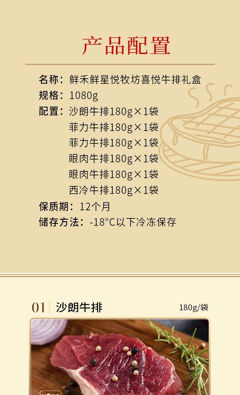 鲜禾鲜星悦牧坊喜悦牛排礼盒1080g