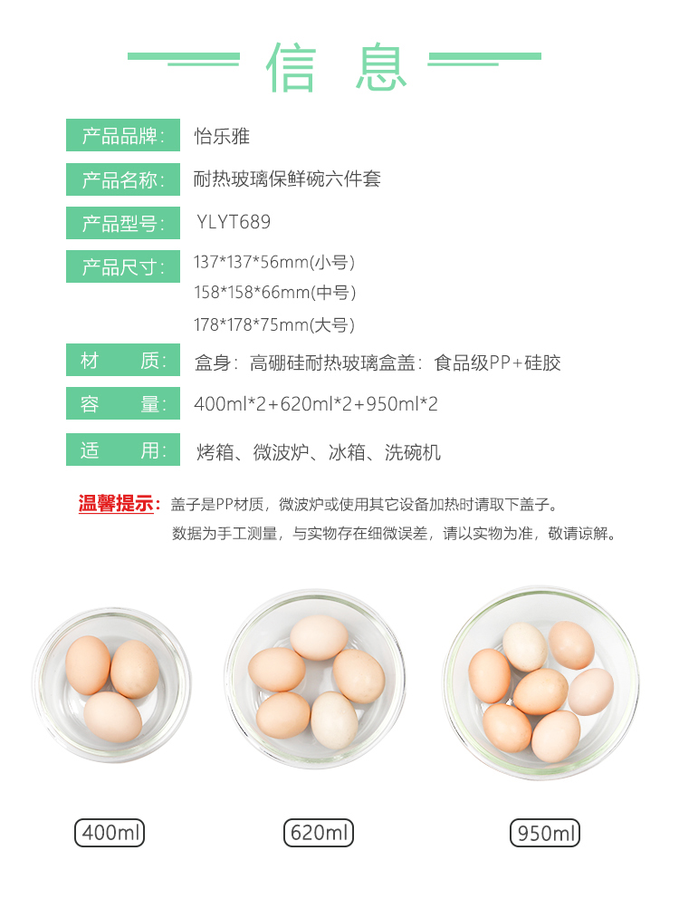 (怡乐雅)高硼硅保鲜碗六件套YLYT689