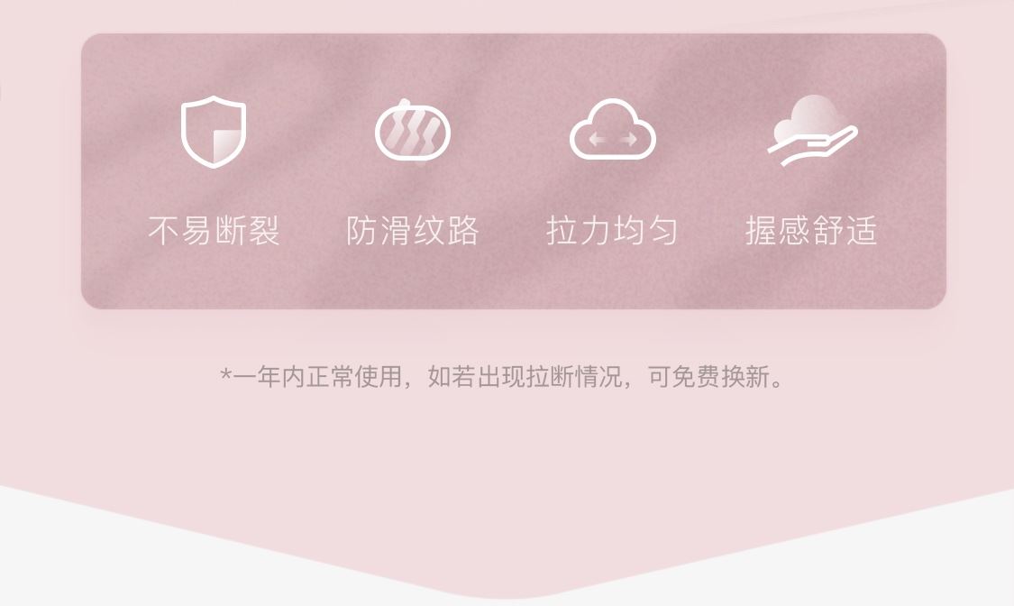 高倍弹力拉伸 10000次强韧抗断裂,3倍拉伸不断裂 舒适防滑手柄柔软不勒手 亲肤无异味,甄选食品级硅胶 小巧便携,轻松放进包包 160g轻量化 轻松练就好身材,一根练遍全身 尺寸:长约45 cm,宽约12.8 cm 颜色:樱花粉、云水蓝、冰川灰、星空紫