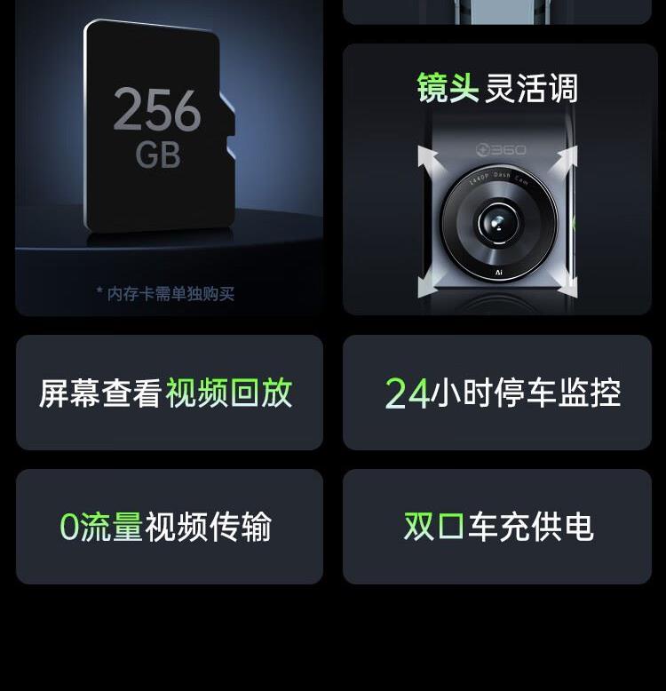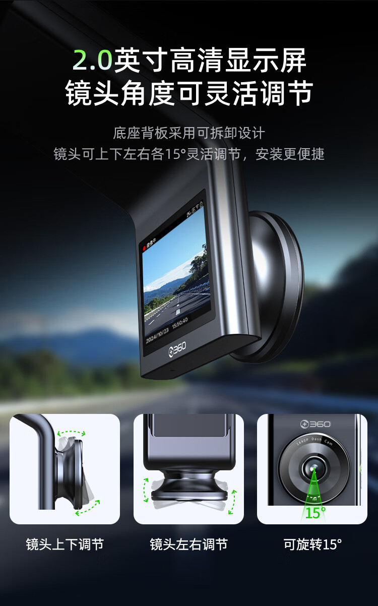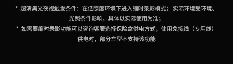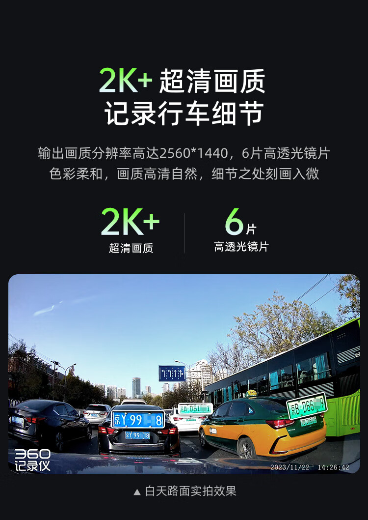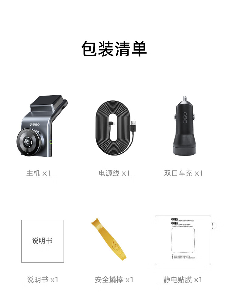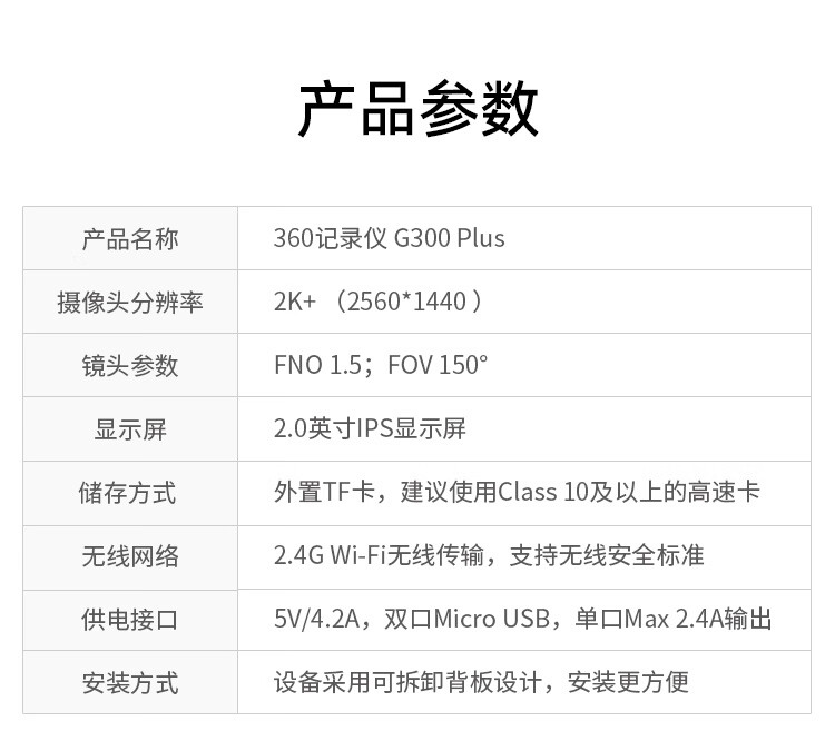 产品参数: 1、400W像素、1440P分辨率、150度广角、F1.5光圈、2英寸屏幕 2、重量:0.32kg、产品尺寸:152*60*152mm、 产品功能: 1、24小时停车监控+震动感应系统,守护不分昼夜(需配降压线) 2、一体式无支架设计、告别凌乱走线,内饰整洁像原装 3、ADAS前车起步智能疲劳预警 4、手机无线链接记录仪,实时观看+相册回看 5、可选配64G\128G\256G内存卡及降压线