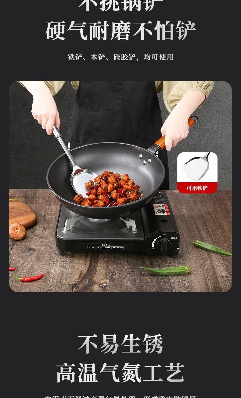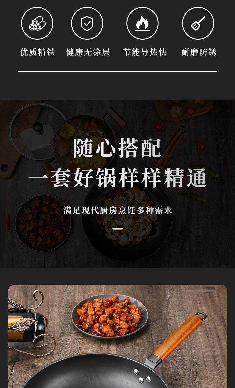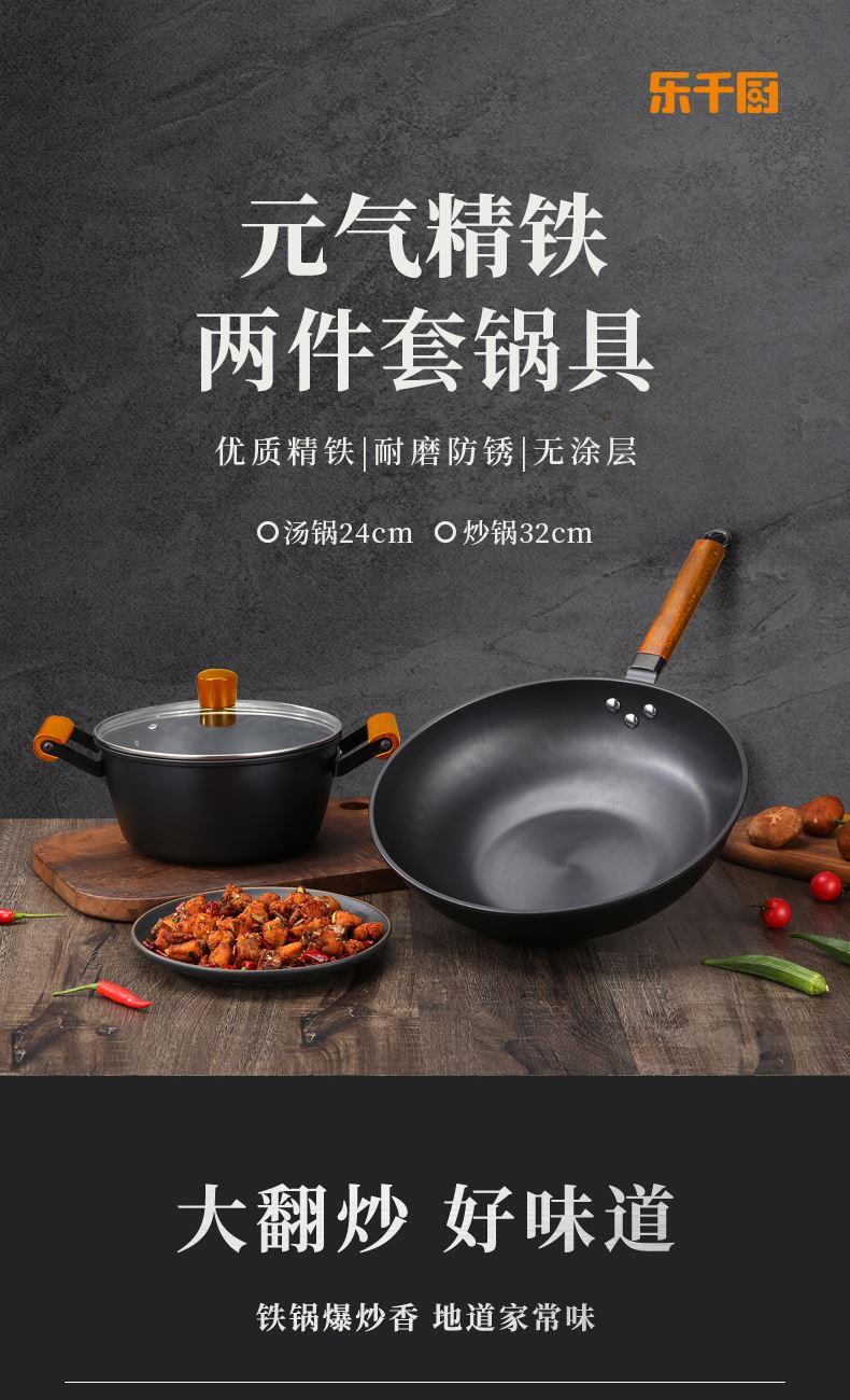 规 格:炒锅32cm 汤锅24cm 加高硼硅盖 材 质:优质精铁 装 箱 数:6pcs/箱 彩盒尺寸:L51*W13*H33.5CM 1、锅身采用高温气氨室化铁技术,无涂层,健康安全。 2、烹饪时游离出更多铁离子,长期使用可达到补铁效果 3、气氢工艺处理,在常规情况下不易生锈 4、可使用各类锅铲,铁铲、木铲、硅胶铲 5、适用燃气灶、电陶炉、电磁炉等各类灶具