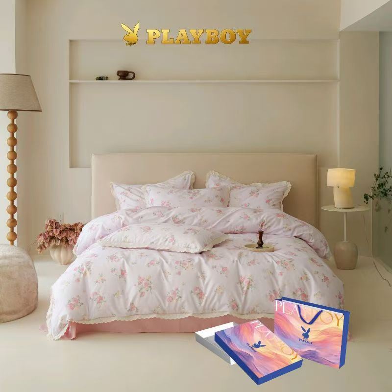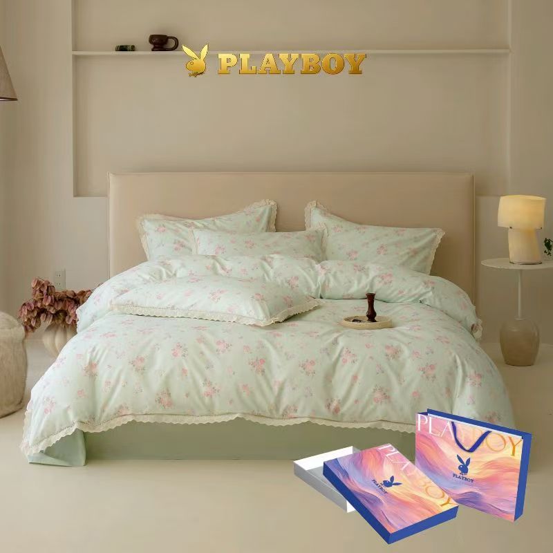 花花公子-家纺-小清新纯棉13372镂空花边四件套