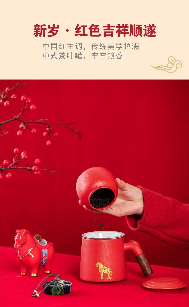 1. 中国红韵:磨砂红茶罐+红釉器具,传统雅致拉满;
