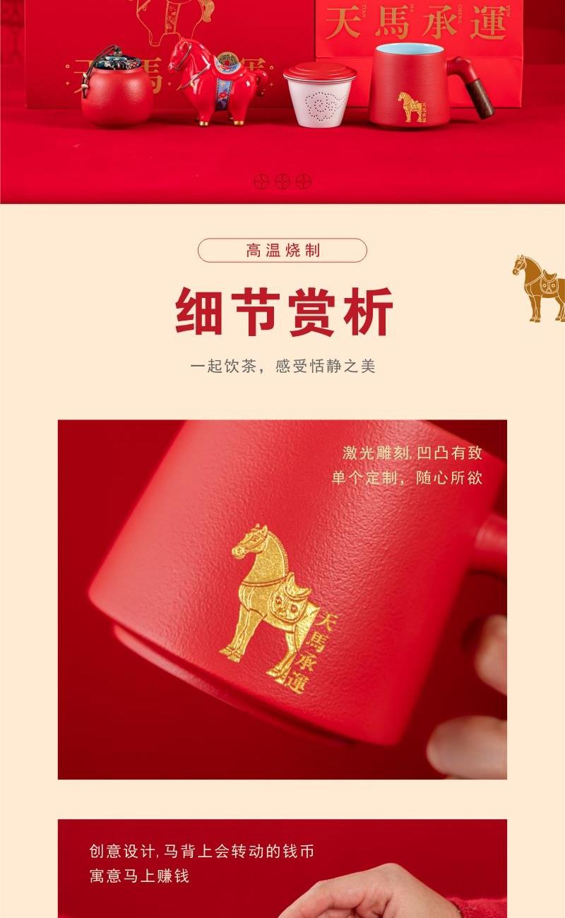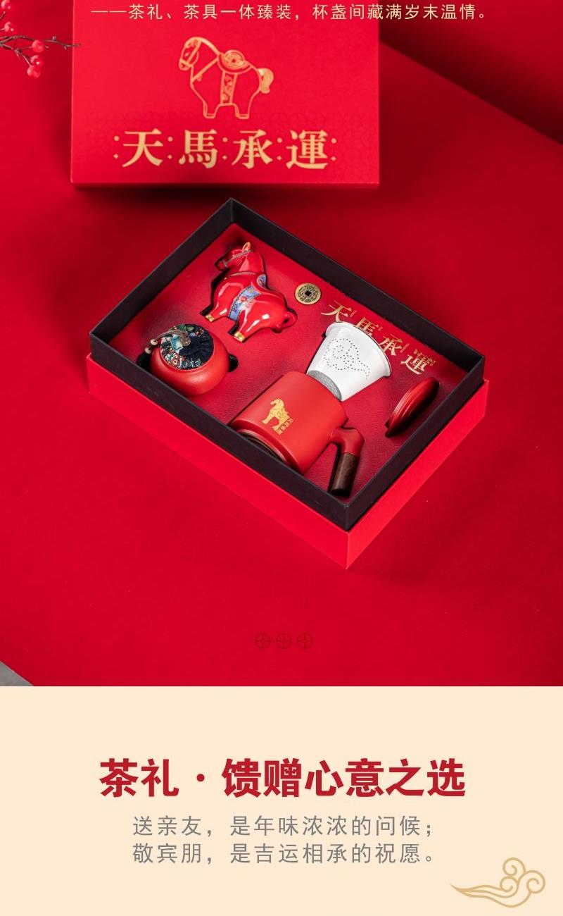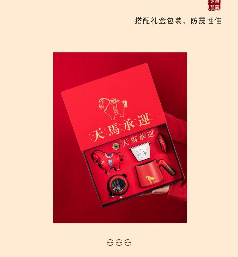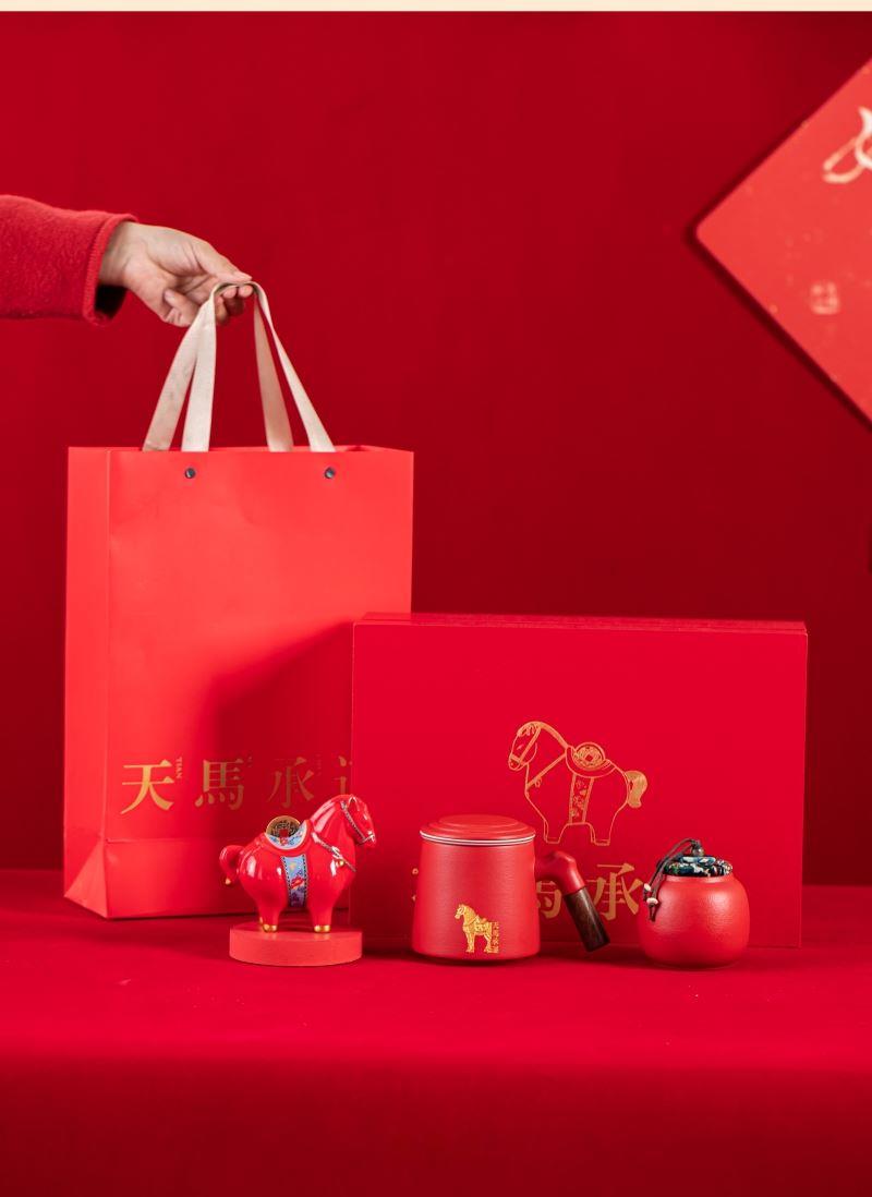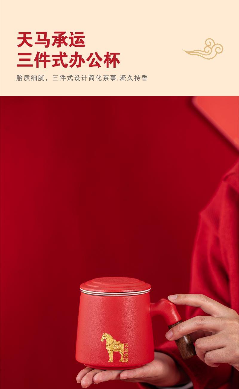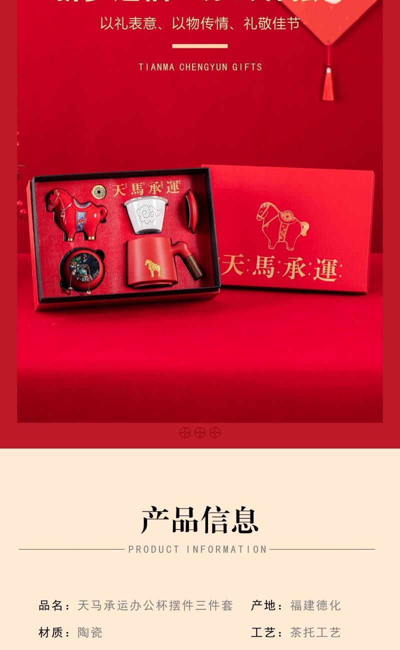 开门红年会茶具礼品天马承运办公杯摆件三件套