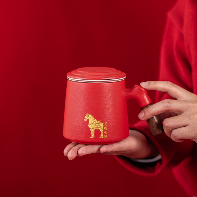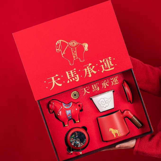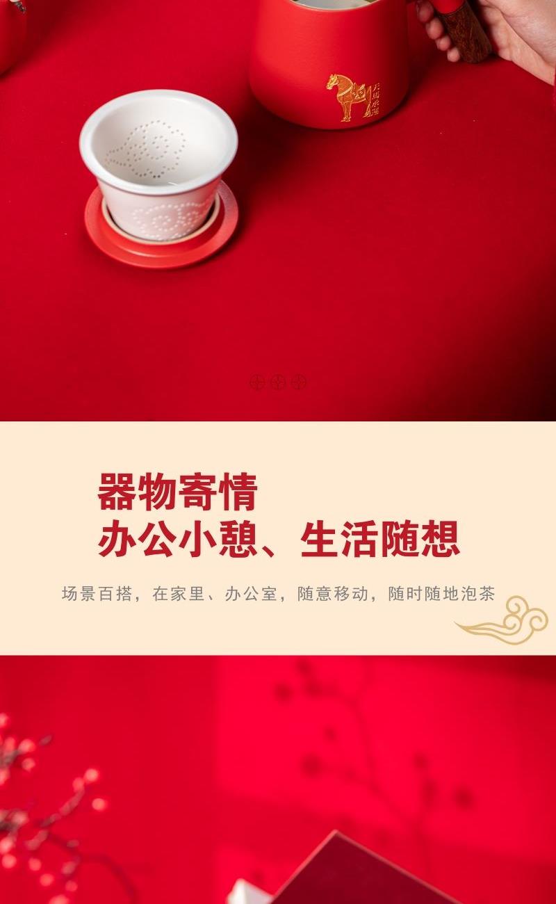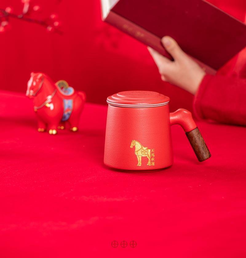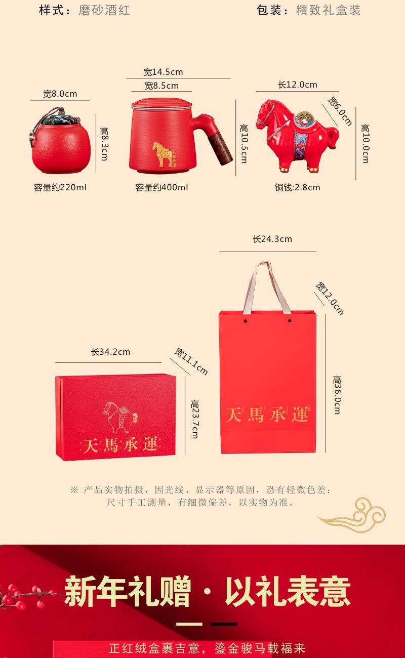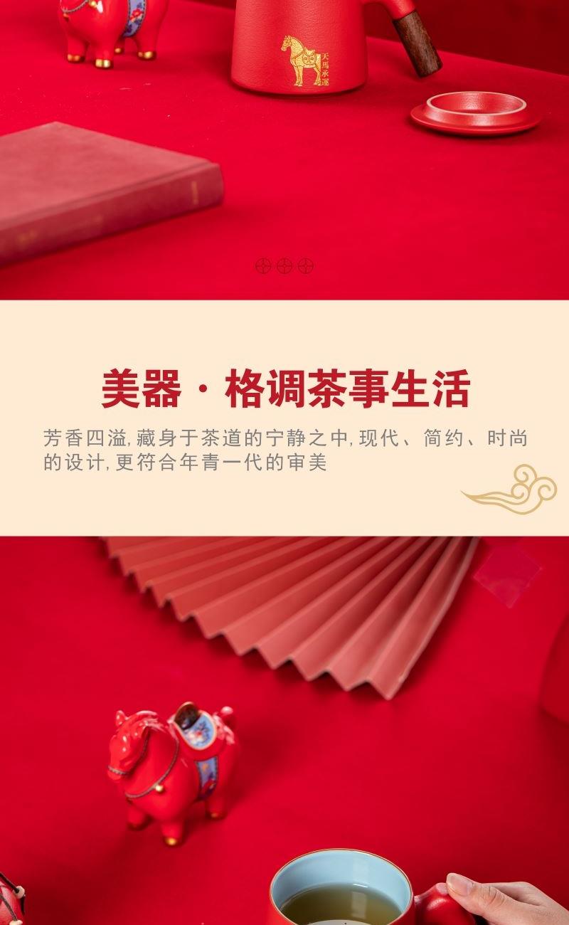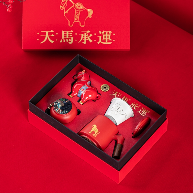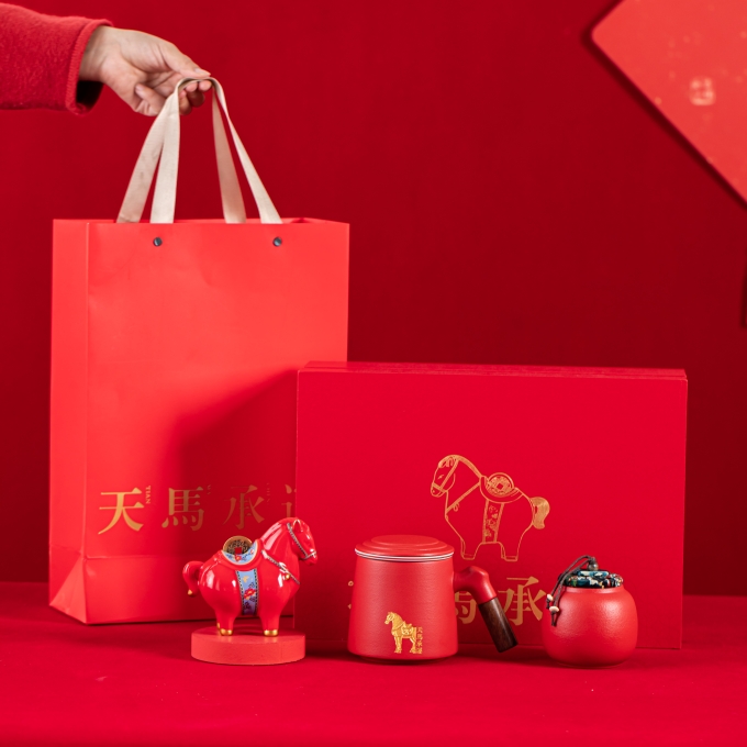 开门红年会茶具礼品天马承运办公杯摆件三件套