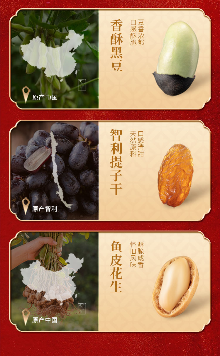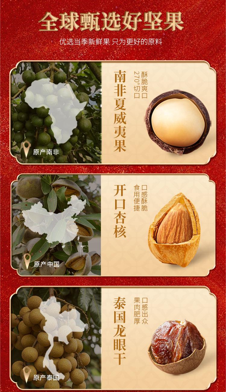 南非夏威夷果200g 开口杏核190g 泰国龙眼干90g 五香黑豆160g 智利提子干260g 鱼皮花生160g