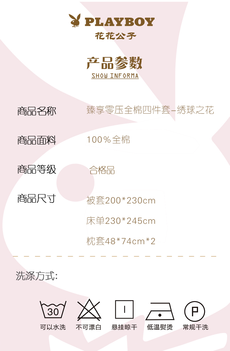 花花公子臻享零压全棉四件套-绣球之花PB-25YZ126