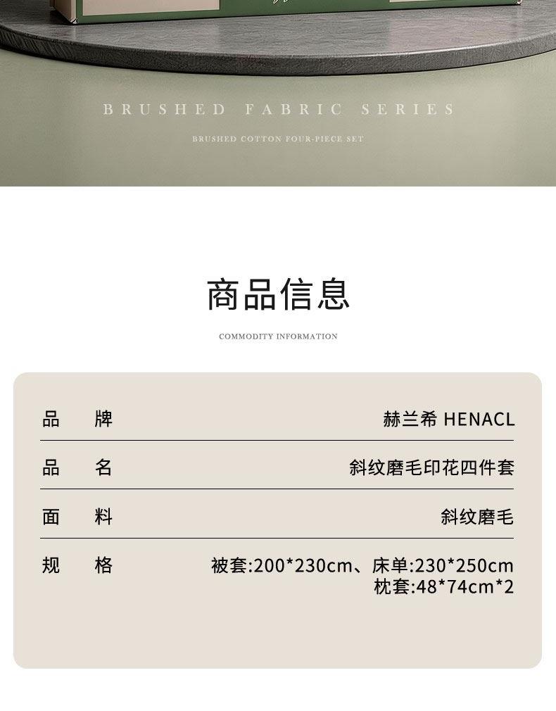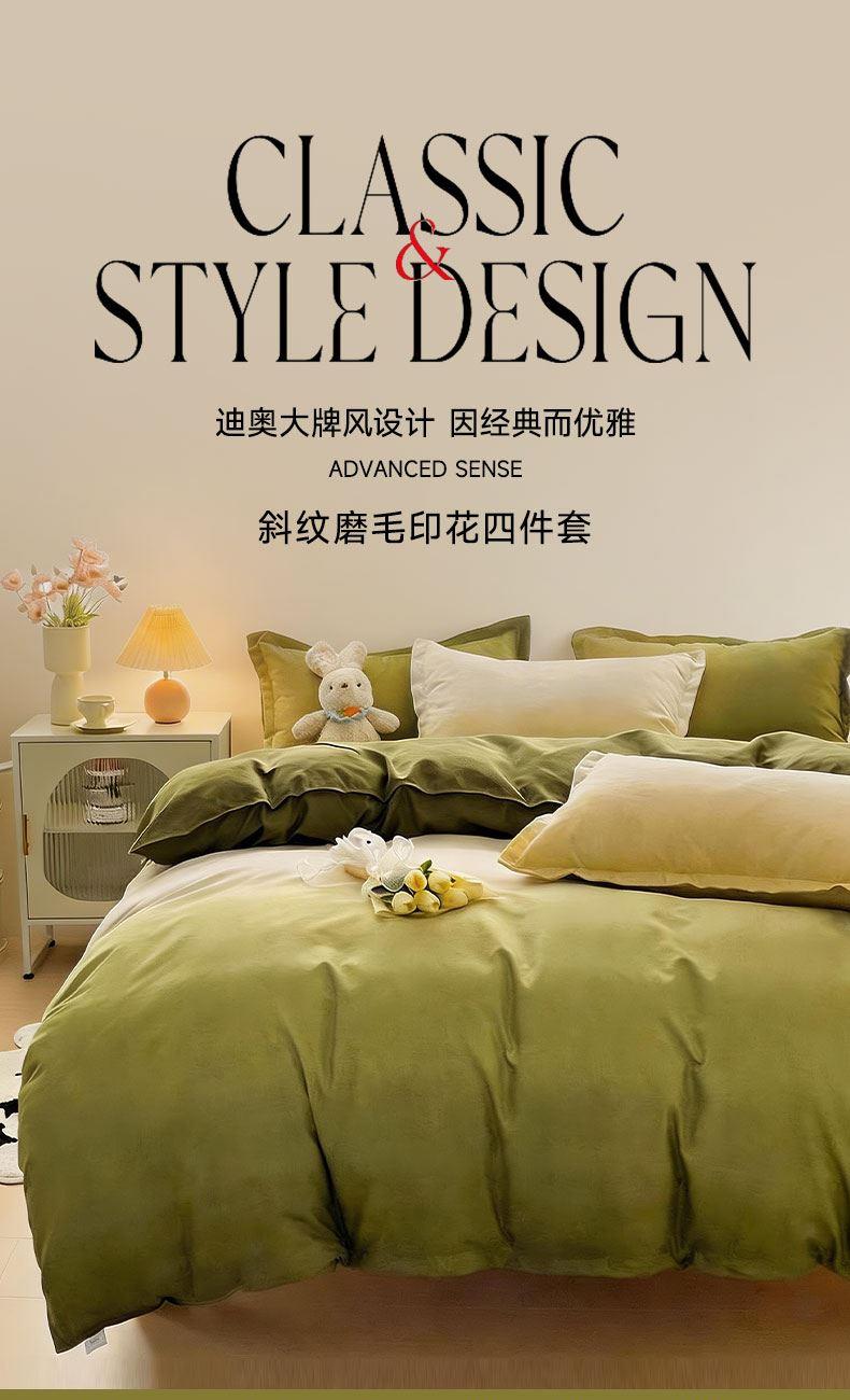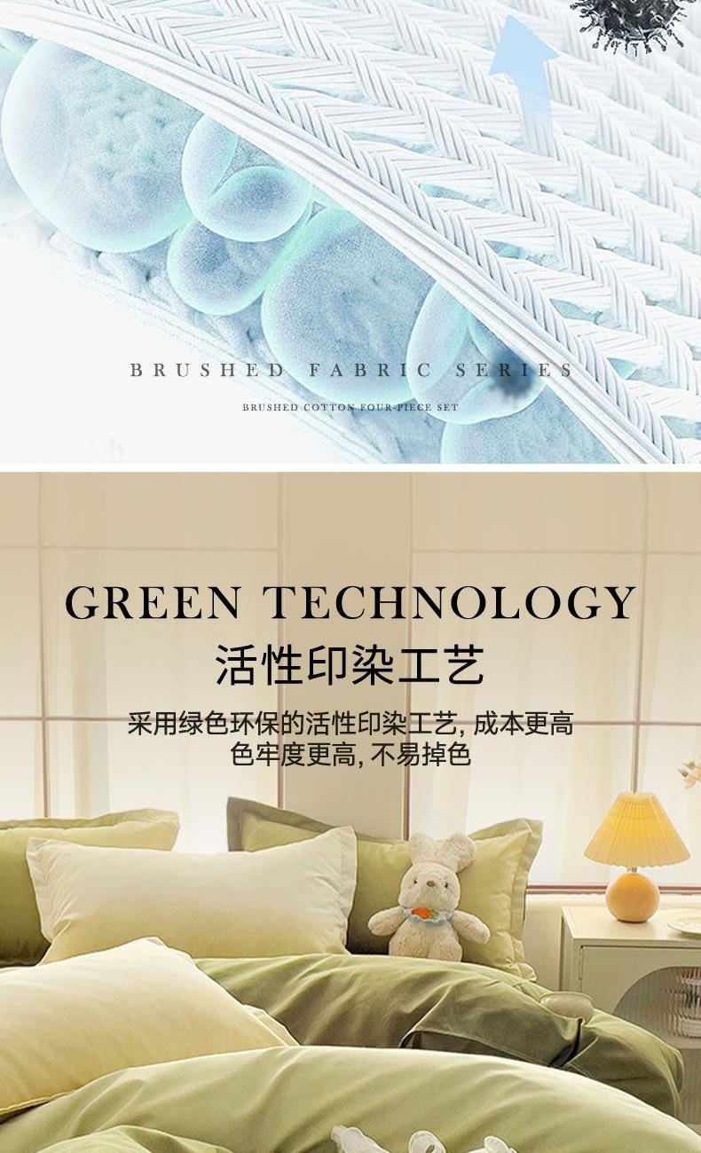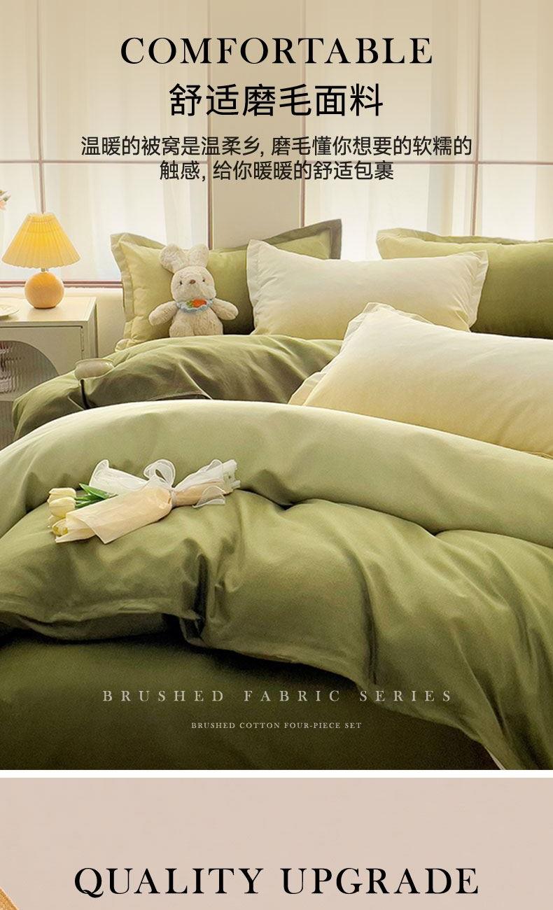 • <赫兰希>ins风斜纹磨毛四件套-青野