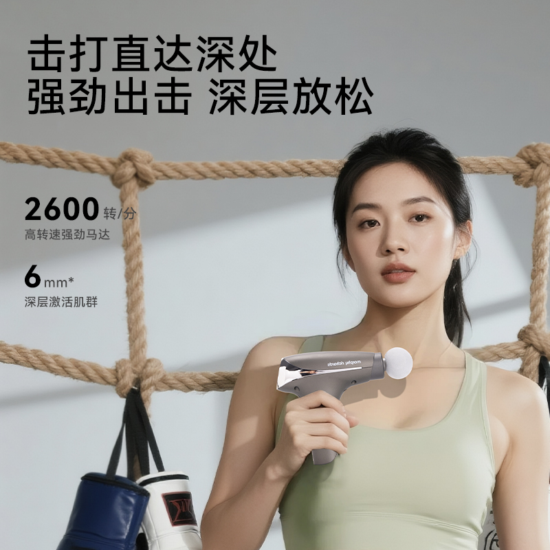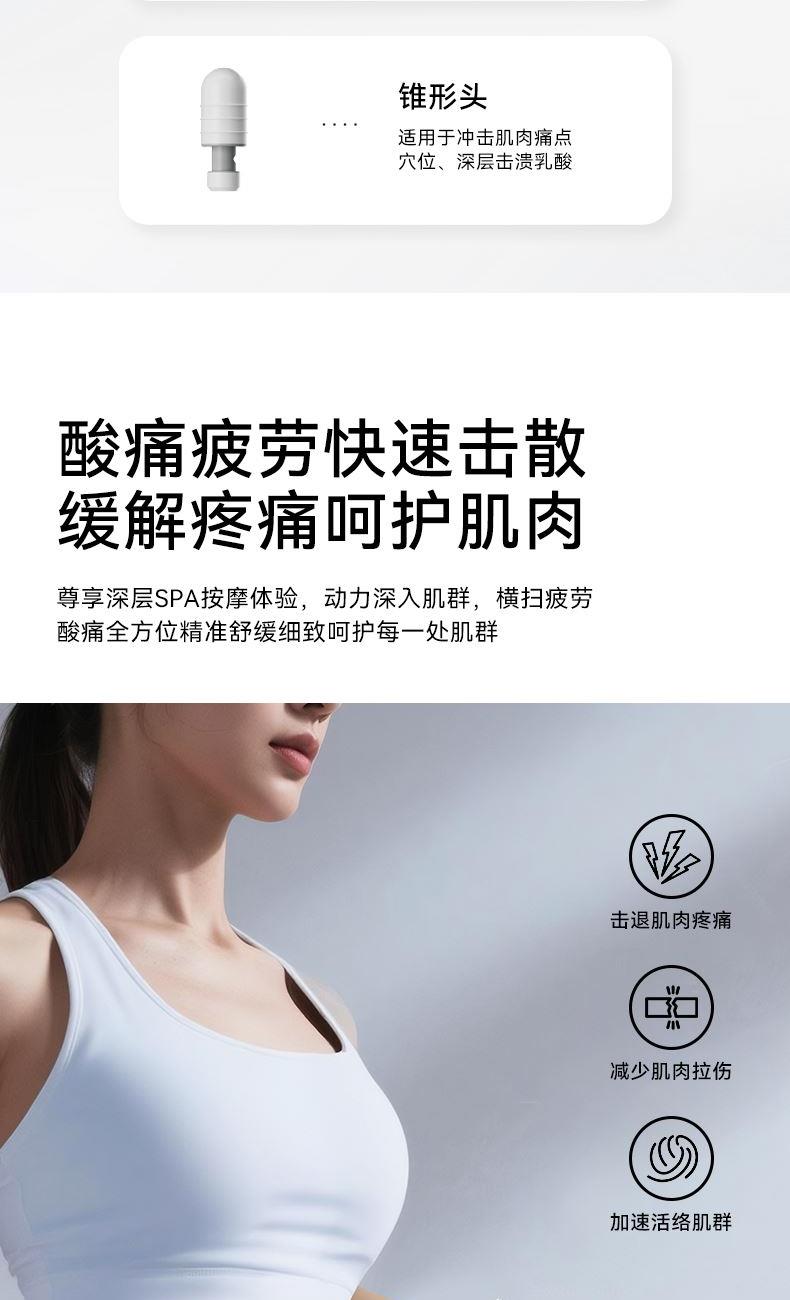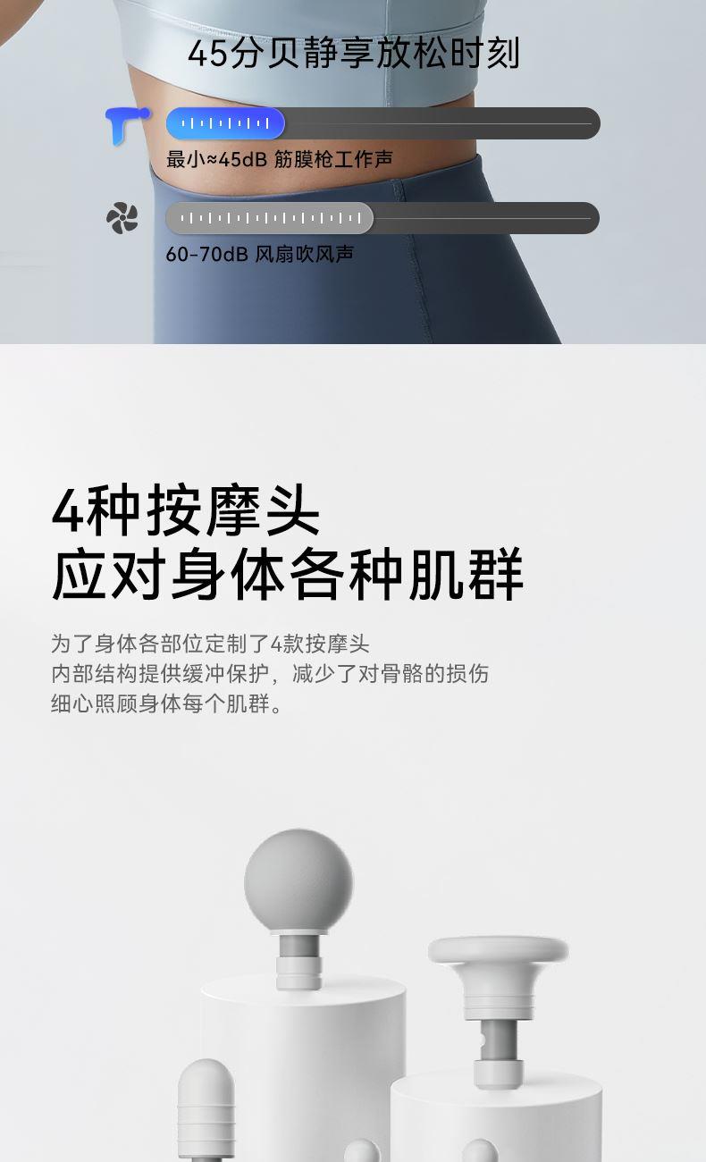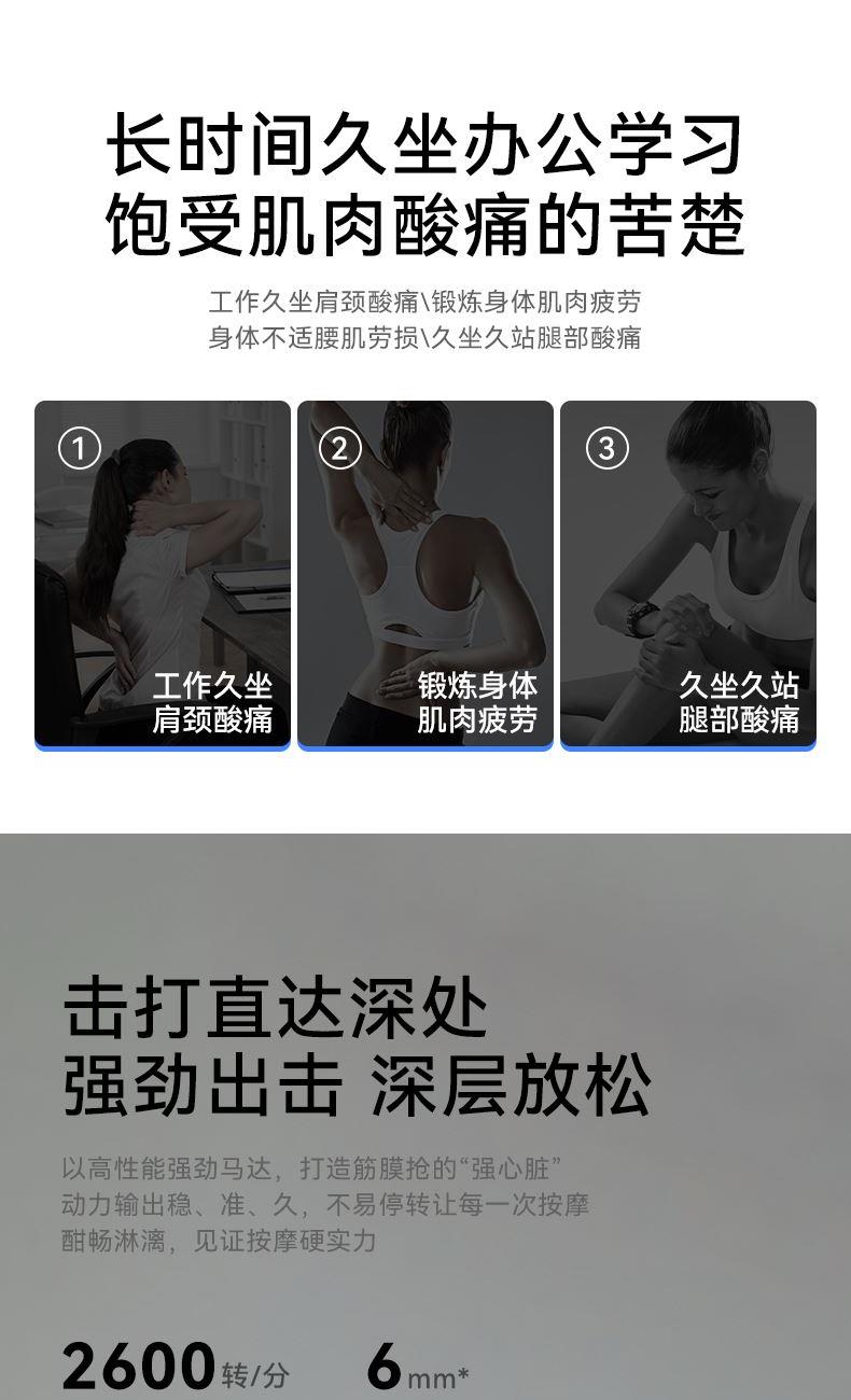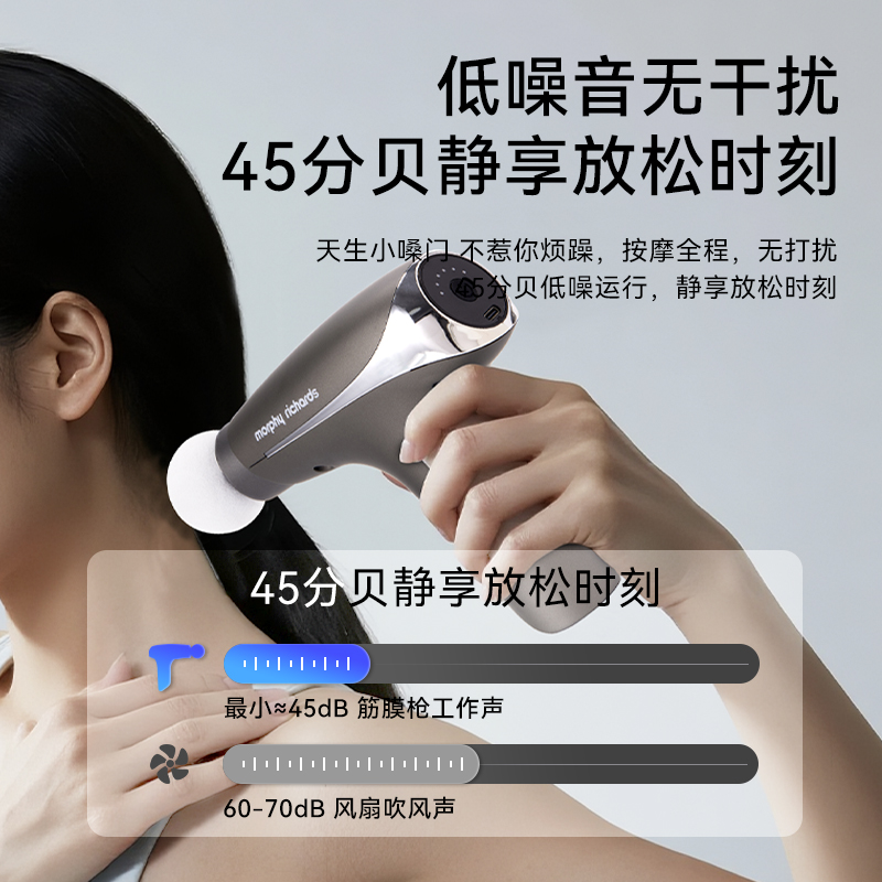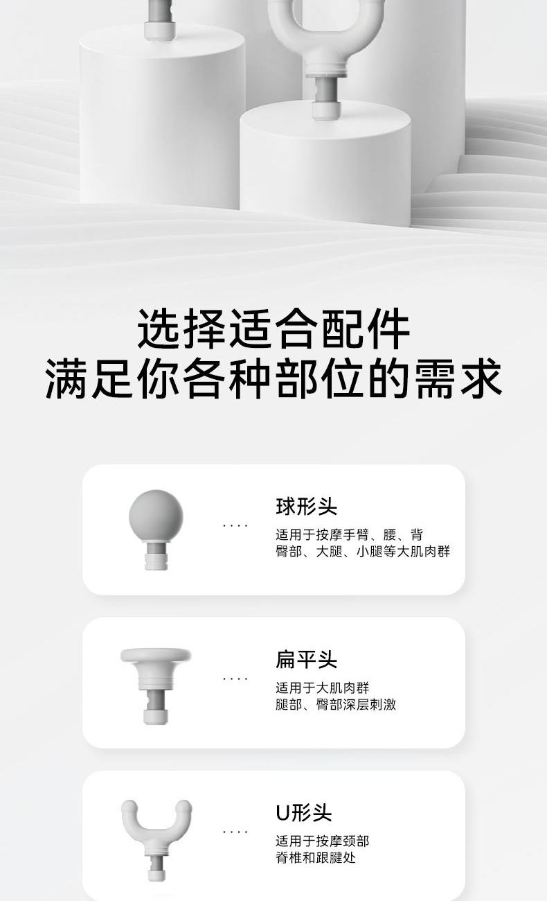 型号 MR7068 产地 浙江金华 净重 427g 毛重 约700g 包装尺寸 21X9X19cm(彩盒) 大箱尺寸 50x44.5X41.5cm 续航: ≈3h 充电时间:2.5小时±0.5小时 充电电压:DC 5V2A 功率:30w 工作电压:7.4V 充电接口:Type-C 电池容量:1200毫安 执行标准:GB31241-2014 配件 主机,按摩头*4,收纳包,充电线 卖点:一件操控、6挡力度调节,满足多样人群需求 30W澎湃动力,直达深层,深入六层肌群 细腻磨砂手感,400g小巧便携 4款高品质按摩头,针对性解决疲劳 45分贝下静音工作 1200mAh锂电池,超长续航