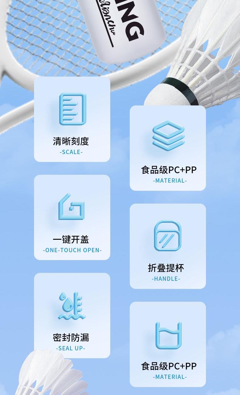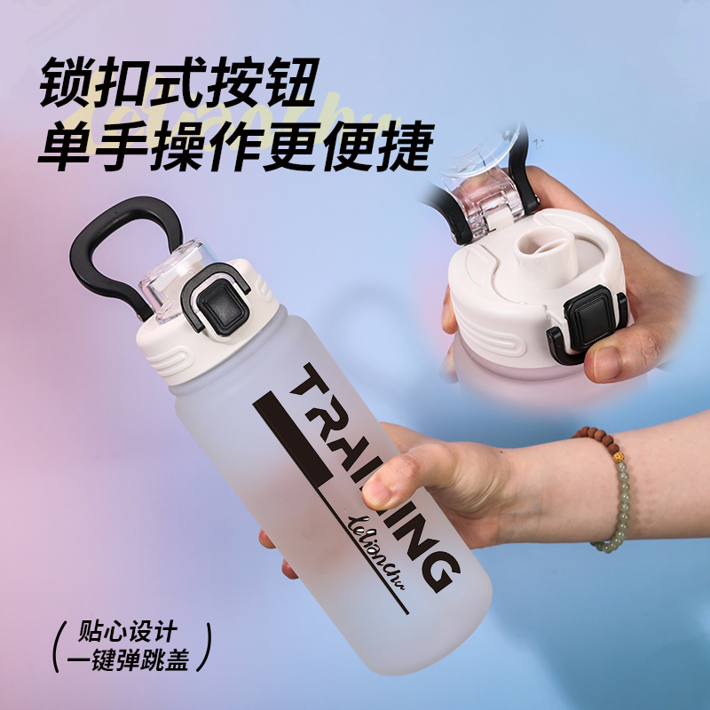 材 质:食品级pc+pp 容 量:950ml 彩盒尺寸:9.5*8.5*25.2 外箱尺寸:87*49.5*27CM 1. 大容量吸管杯,轻松满足全天饮水需求 2. PP吸嘴配食品级硅胶吸管,饮水安全又舒适 3. 锁扣式按钮设计,单手操作便捷,饮水更安心 4. 自带环形提手,拎拿方便,出行携带无压力