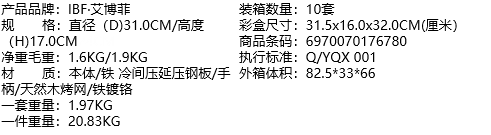 规 格:直径(D)31.0CM/高度(H)17.0CM24CM