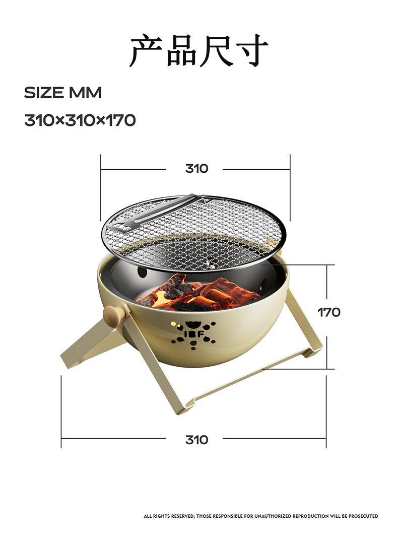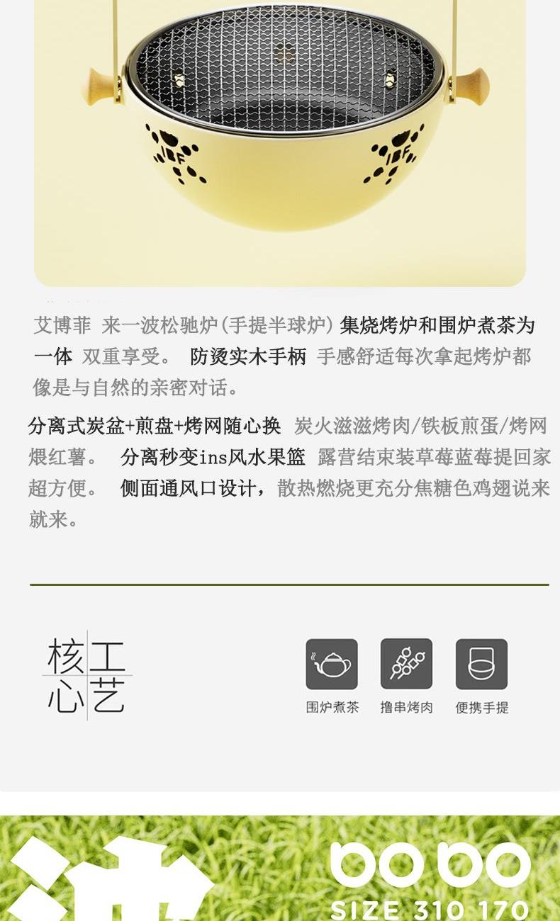 防烫实木手柄,手感舒适每次拿起烤炉都像是与自然的亲密对话