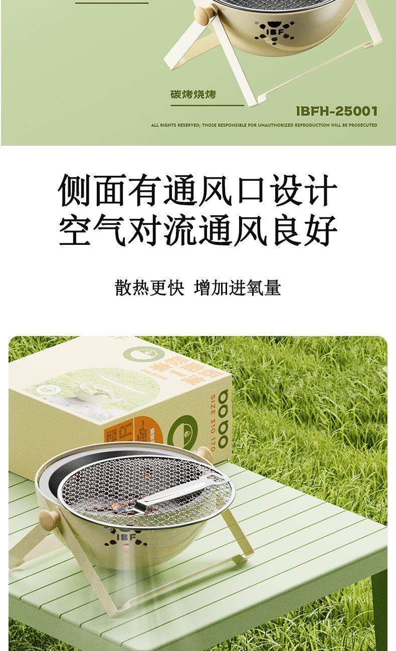 分离式炭盆+煎盘+烤网随心换 炭火滋滋烤肉/铁板煎蛋/烤网煨红薯