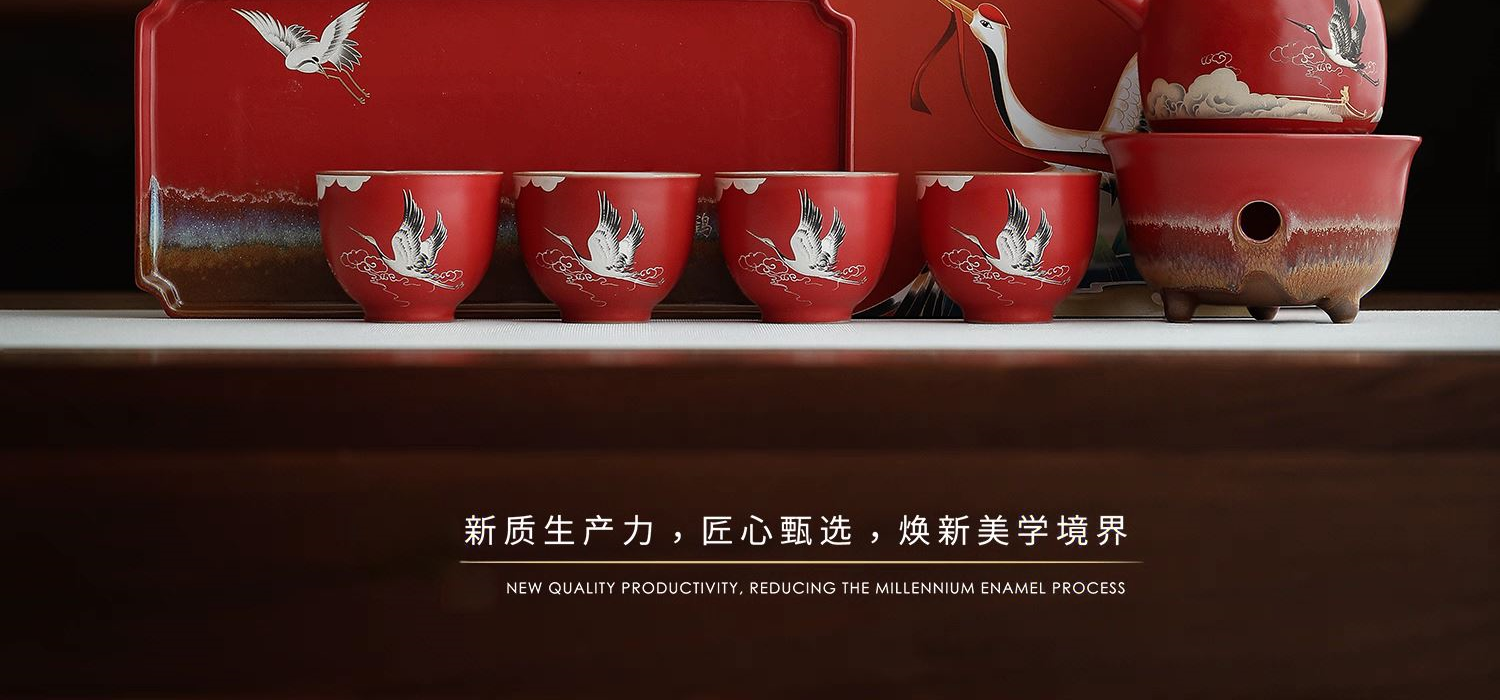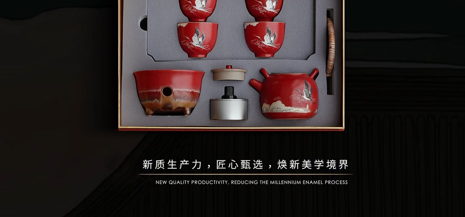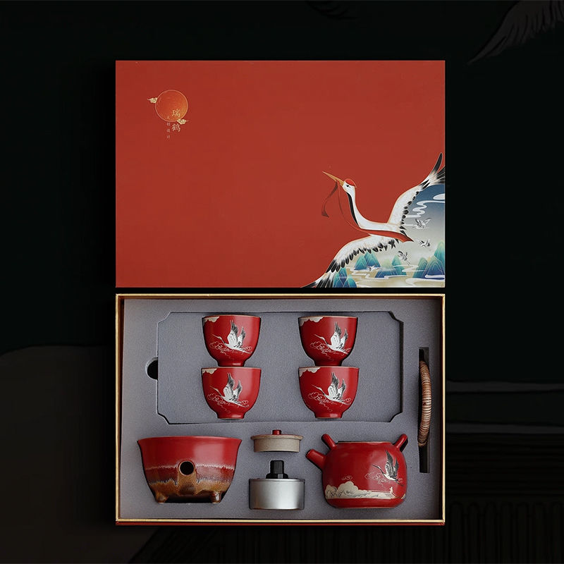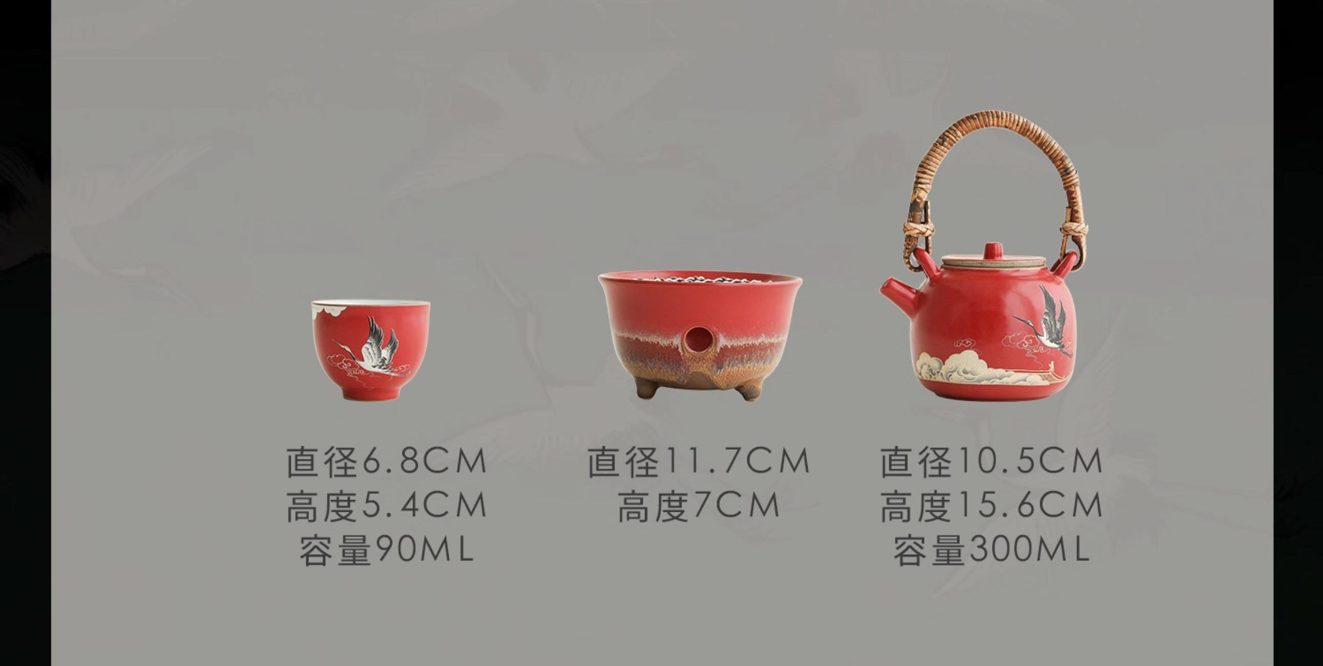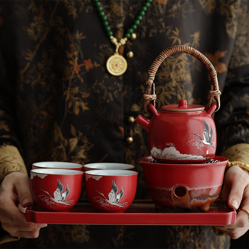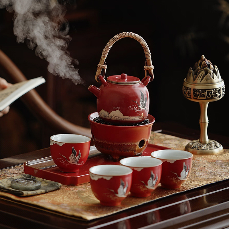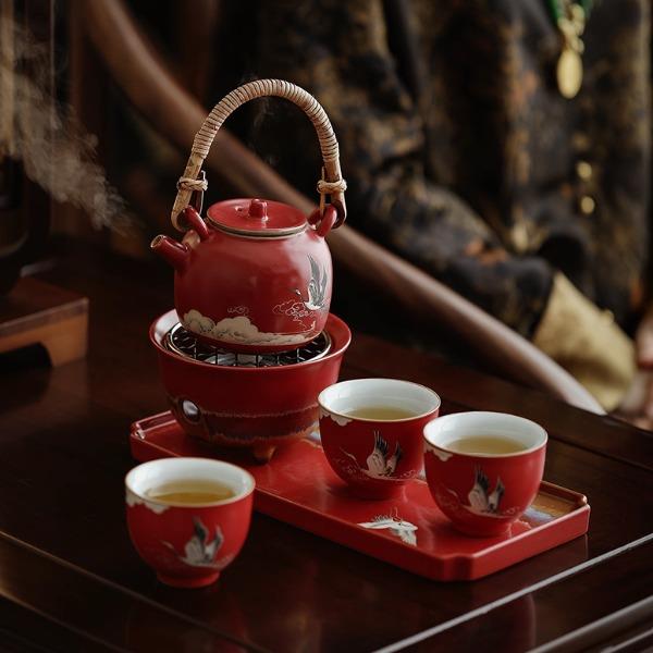 尾桥下窑宫墙红窑变瑞鹤呈祥提梁煮茶壶茶具套装年会开门红伴手礼