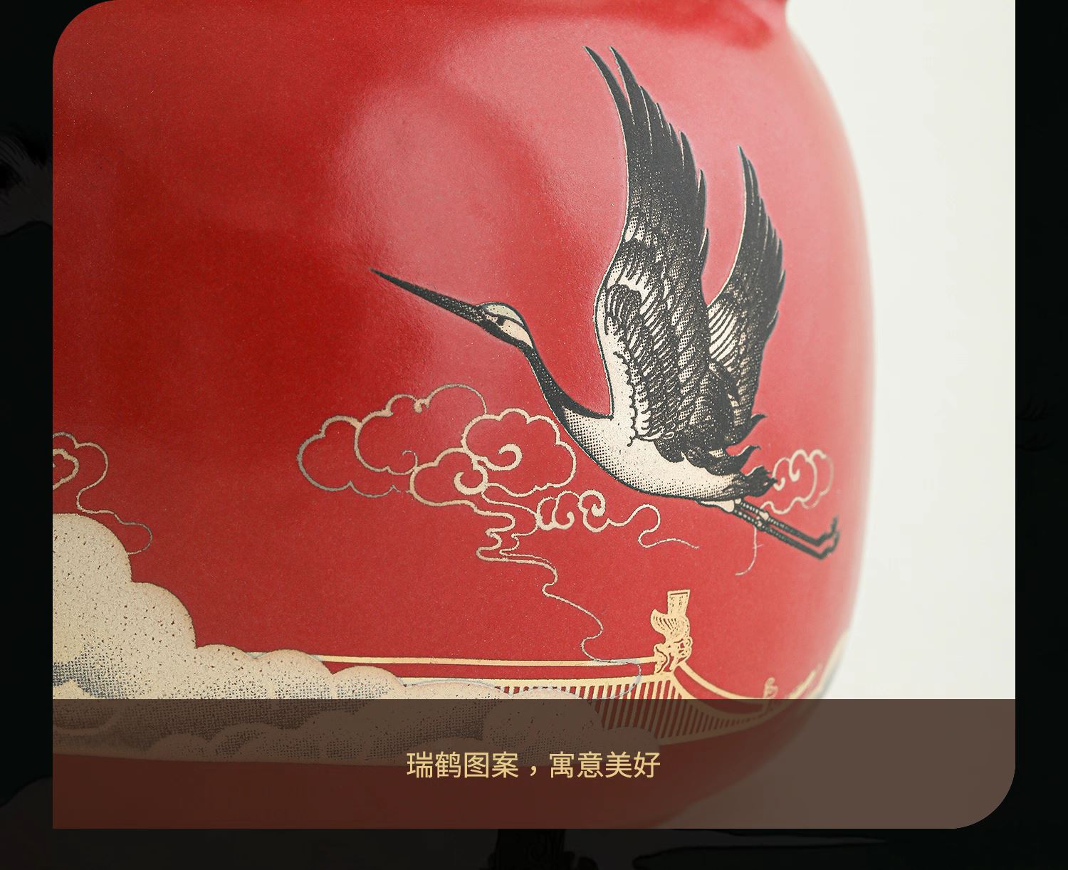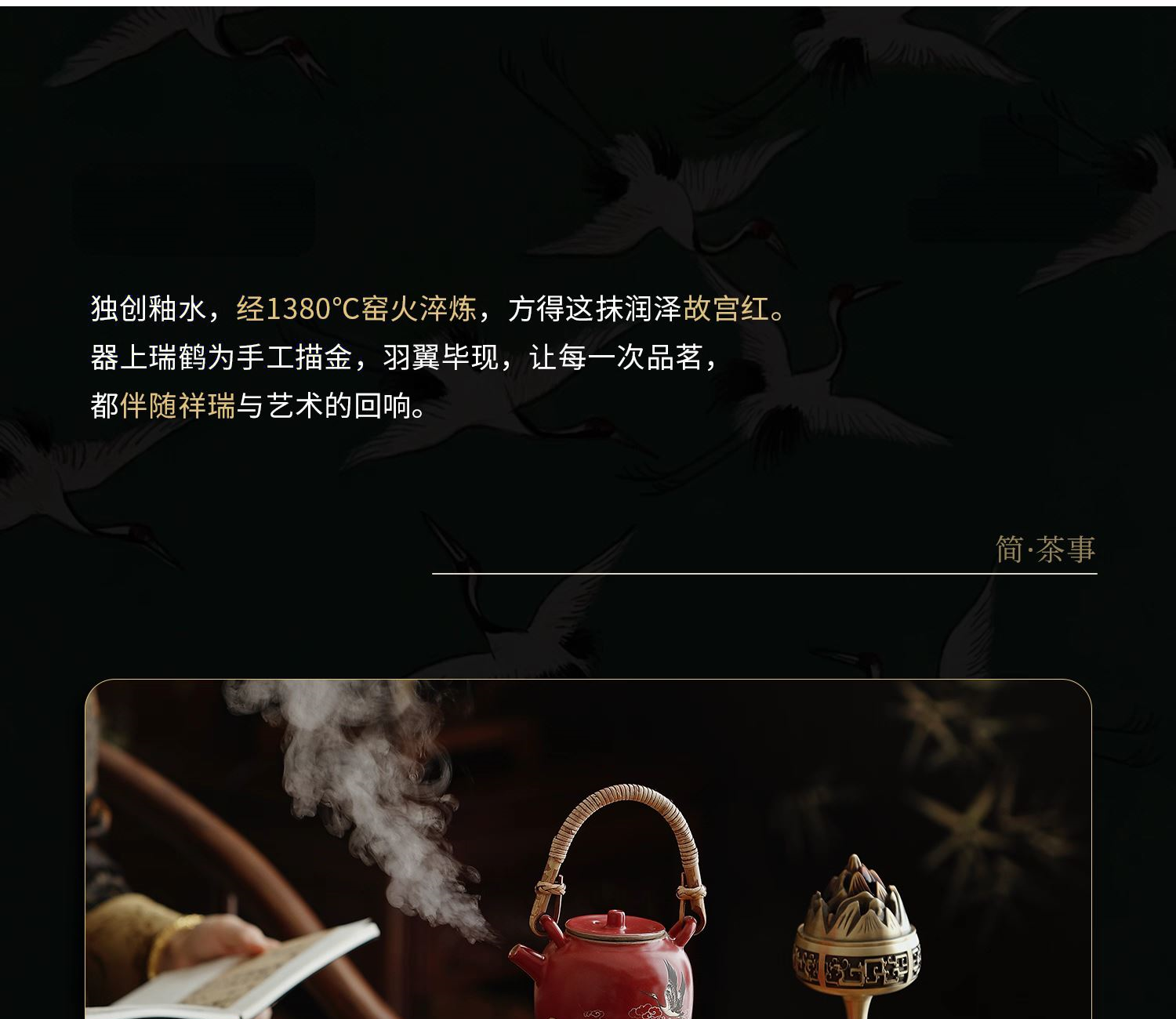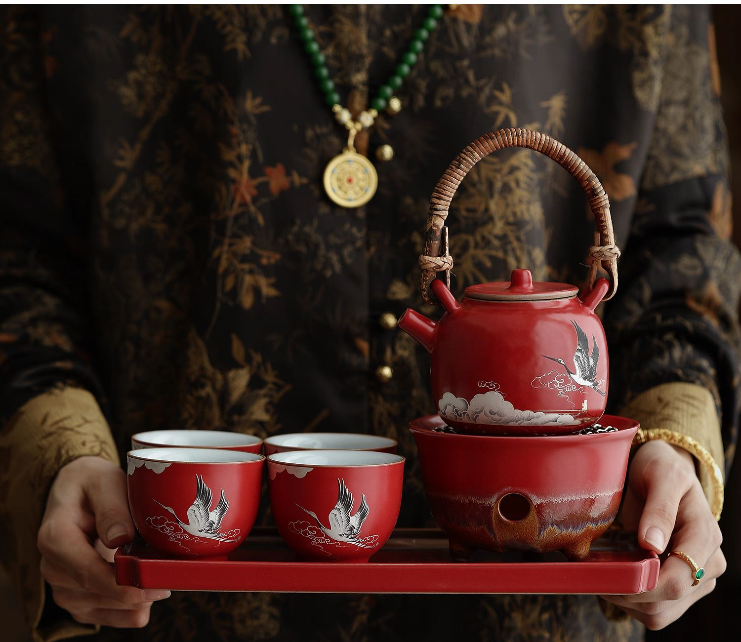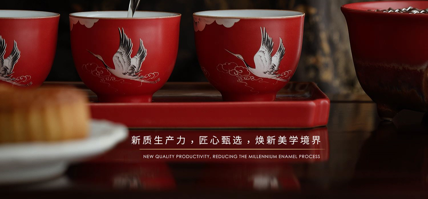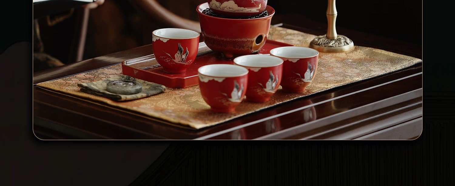 尾桥下窑宫墙红窑变瑞鹤呈祥提梁煮茶壶茶具套装年会开门红伴手礼