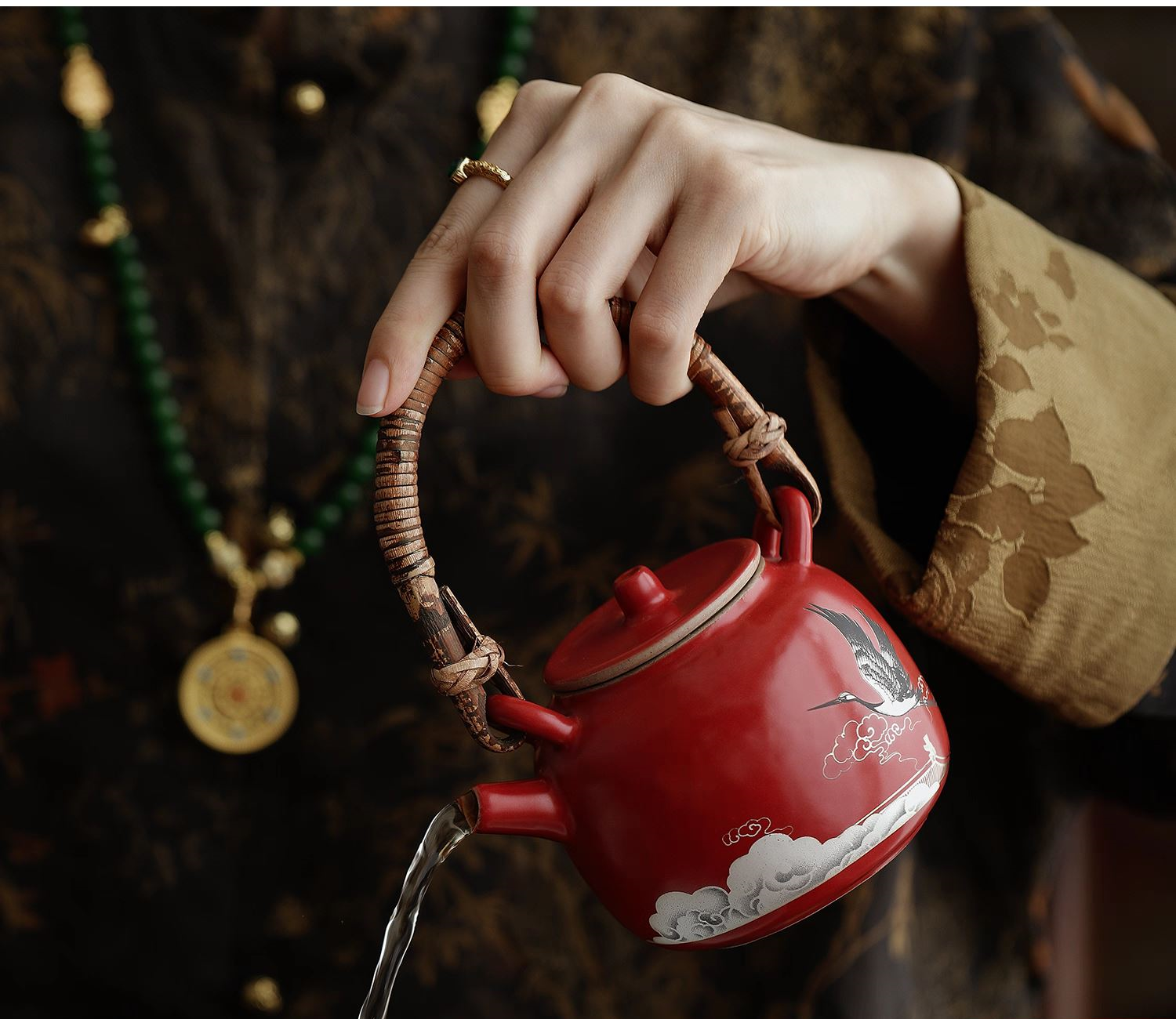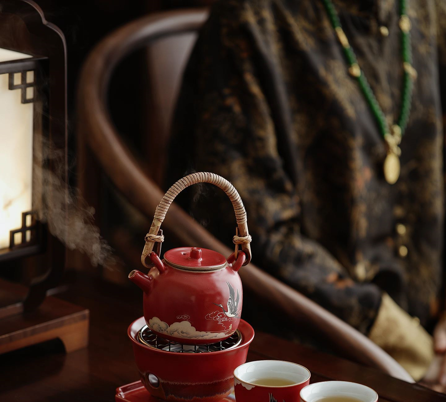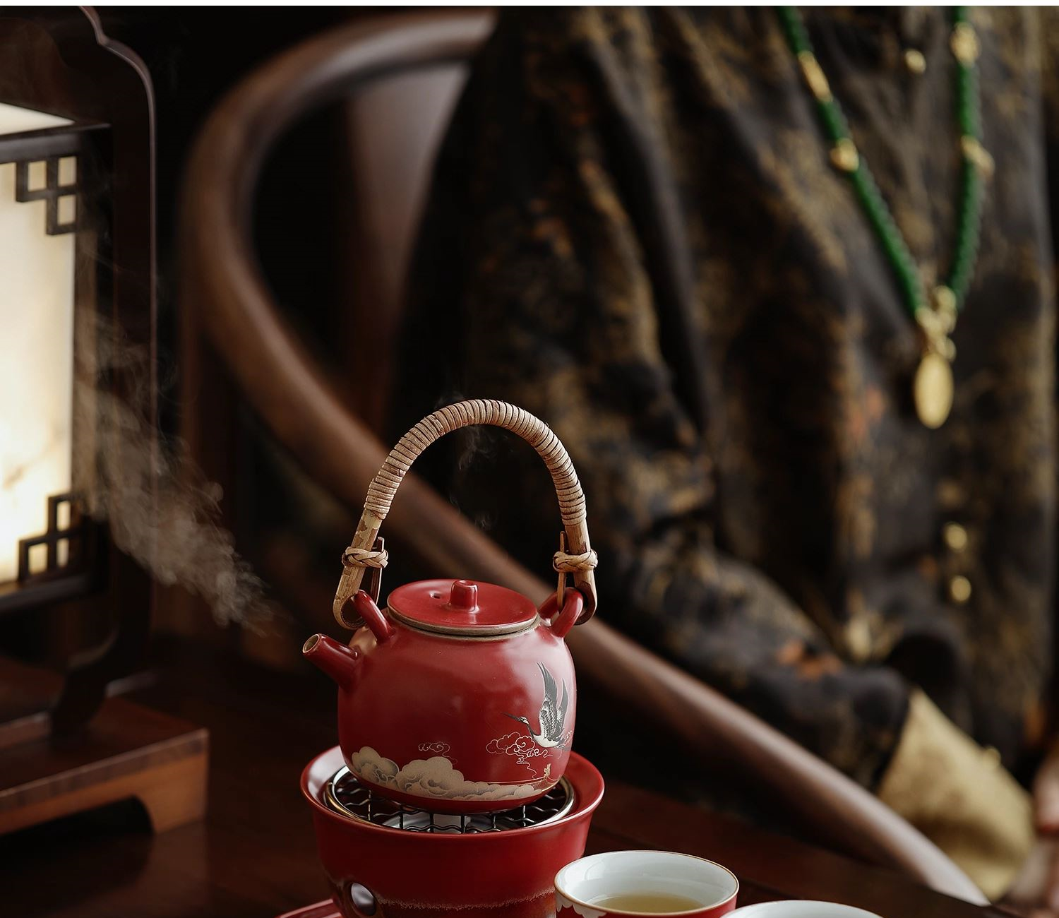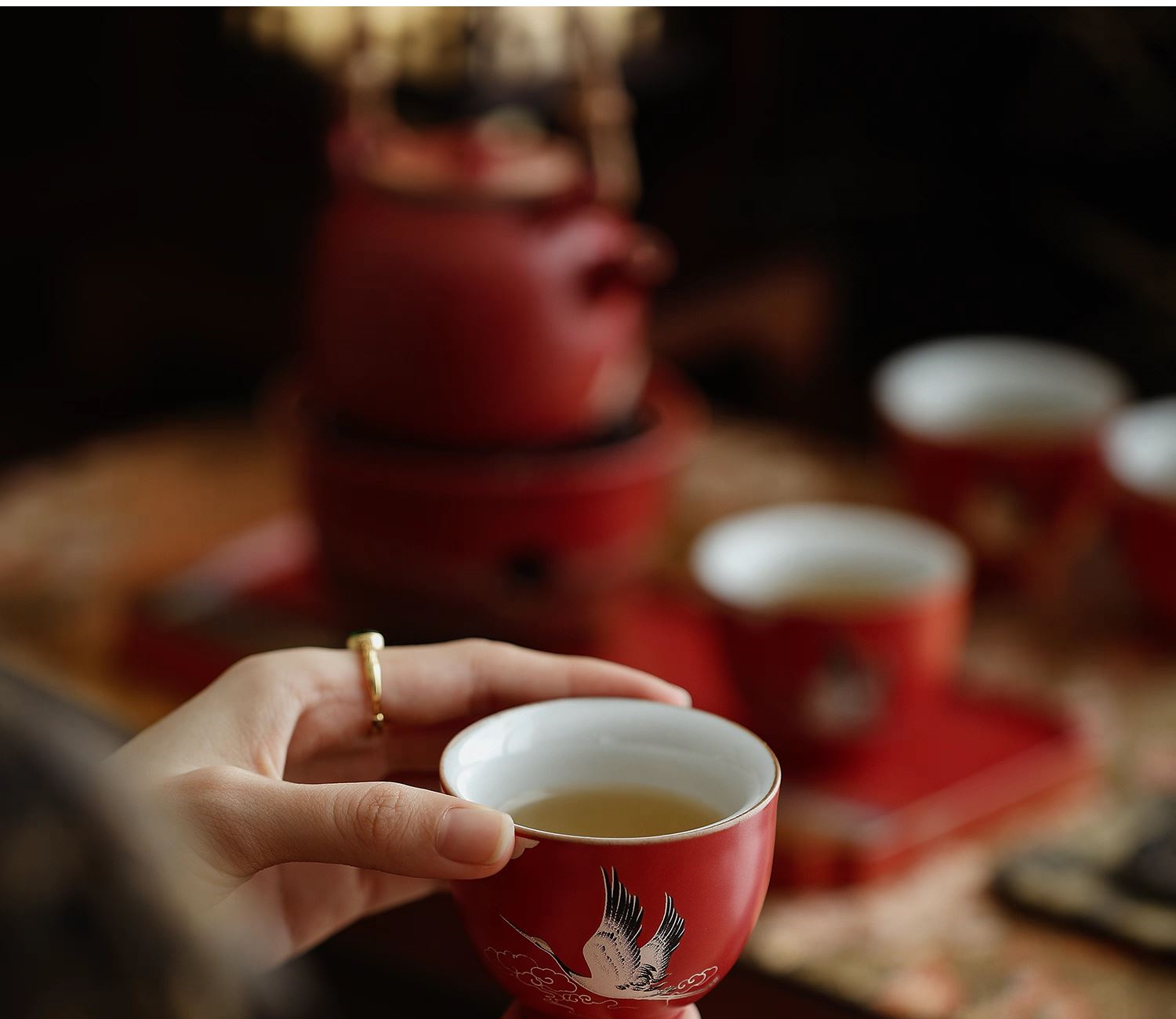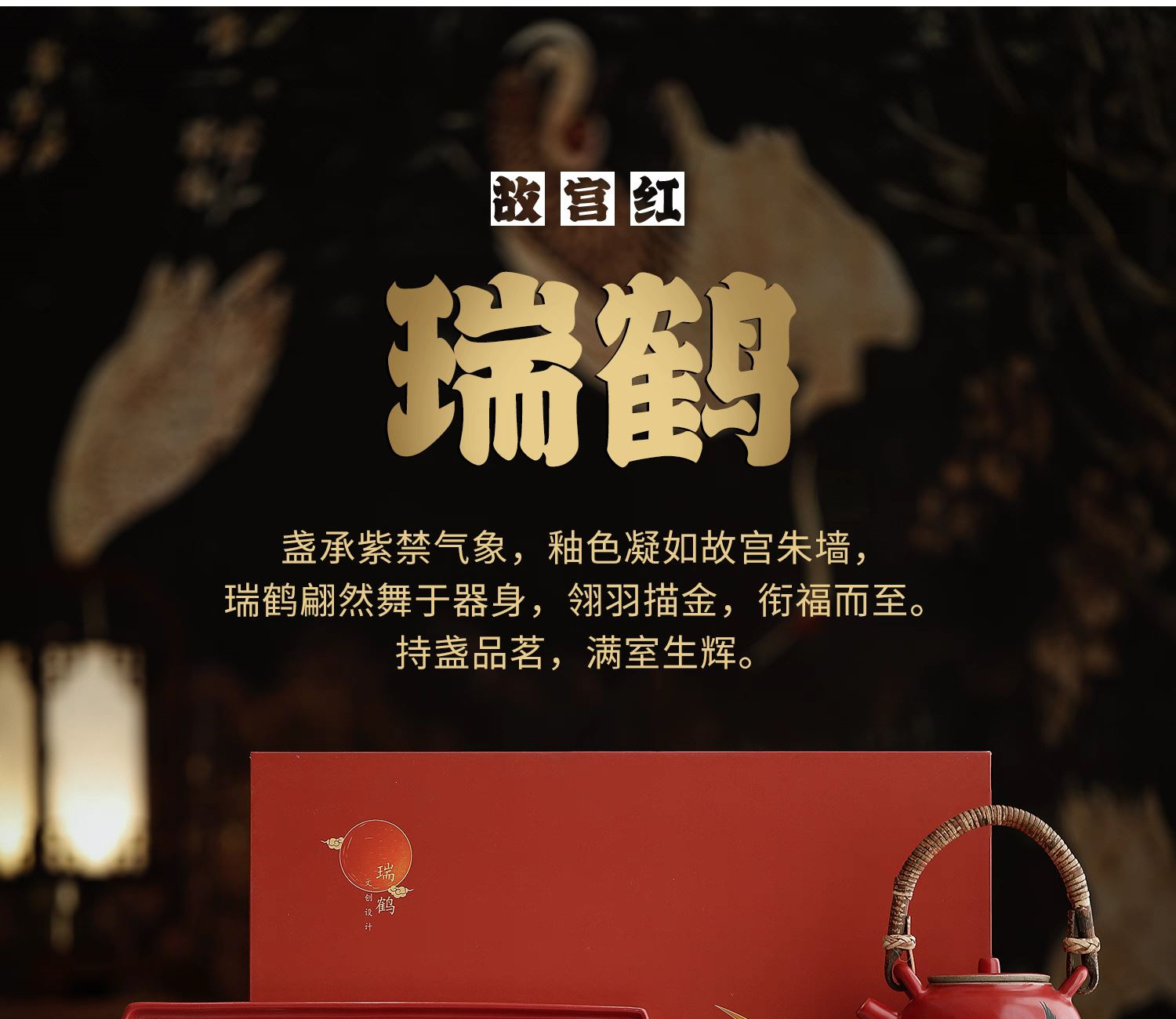 尾桥下窑宫墙红窑变瑞鹤呈祥提梁煮茶壶茶具套装年会开门红伴手礼
