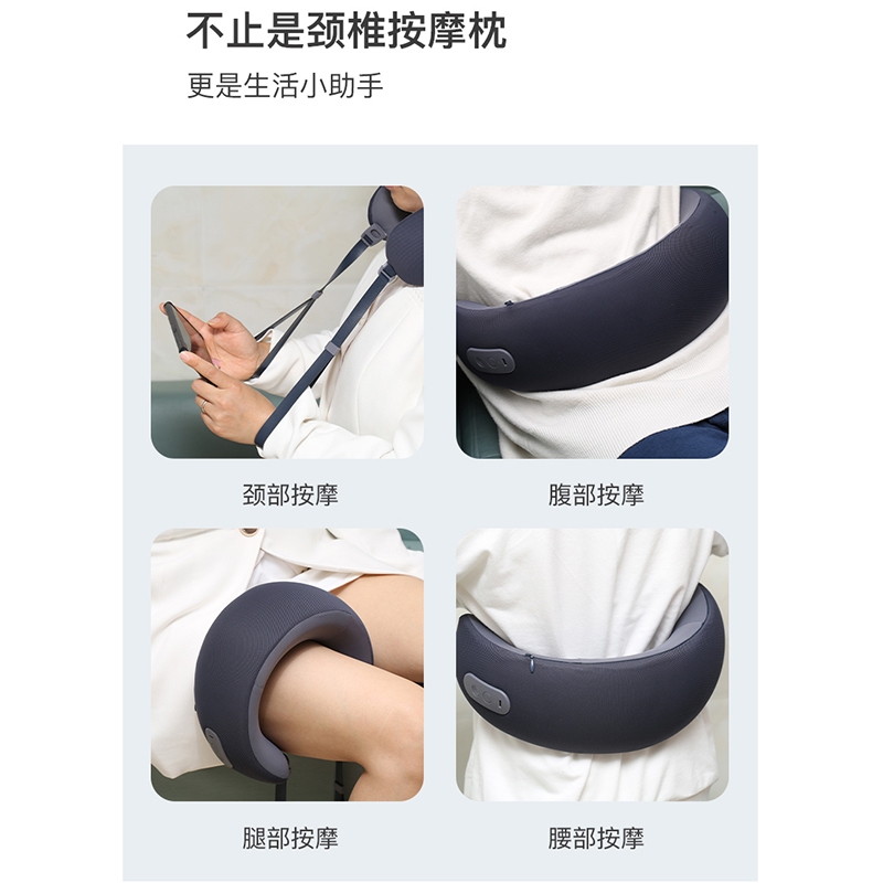 材质:瑜伽布料,回弹记忆棉,PU材质 充电口:TypeC 产品尺寸:220*220*115mm 产品净重:500g 额定功率:3.7W 电池容量:1200mAh • 仿真人按摩手感 强电机高配 • 360°环颈支撑 高密度回弹记忆棉 • C口便捷携带可充电 智能定时15分钟模式 • 恒温热敷功能可选 ,质保一年,只换不修