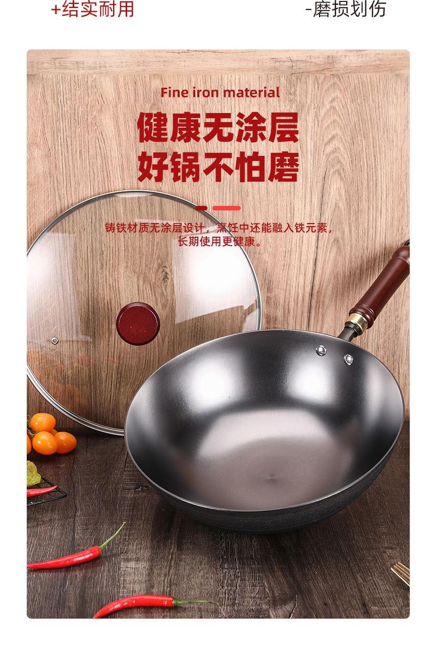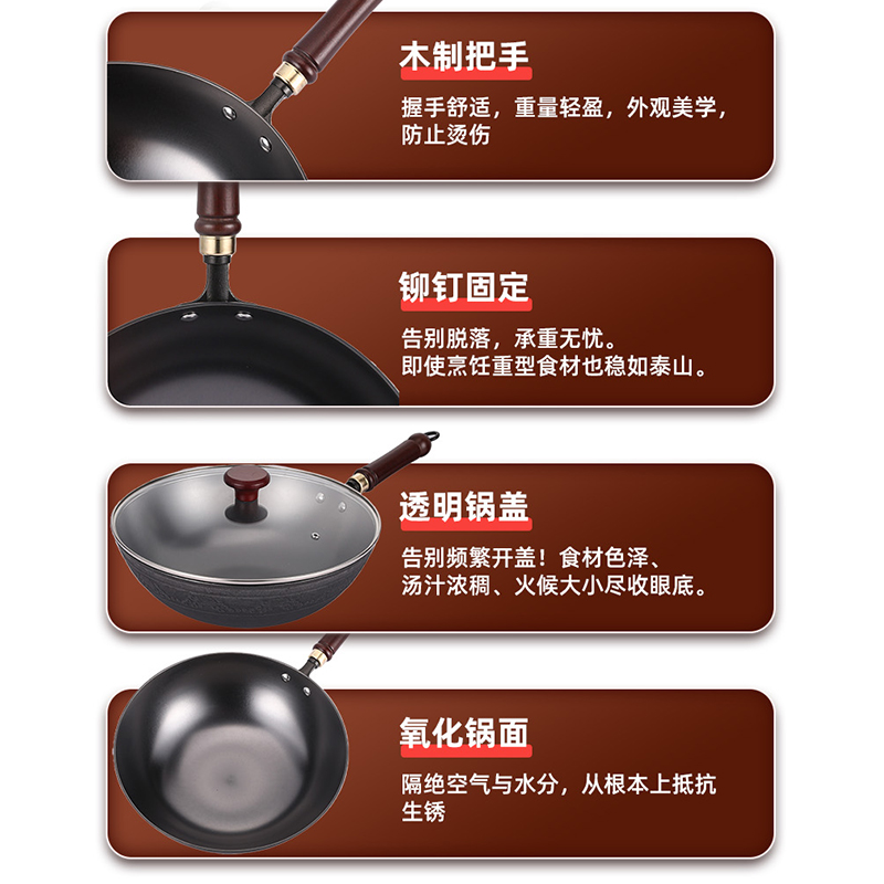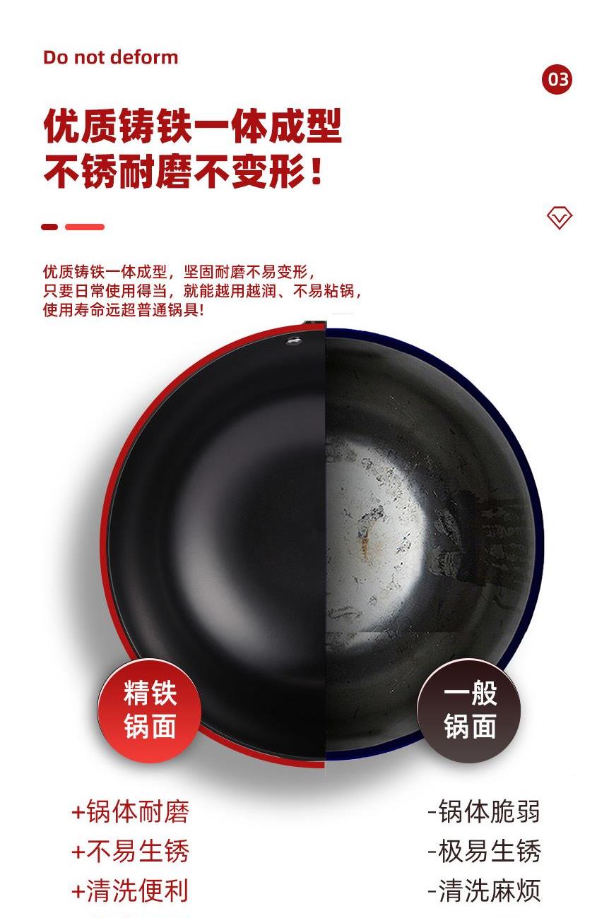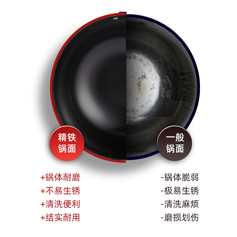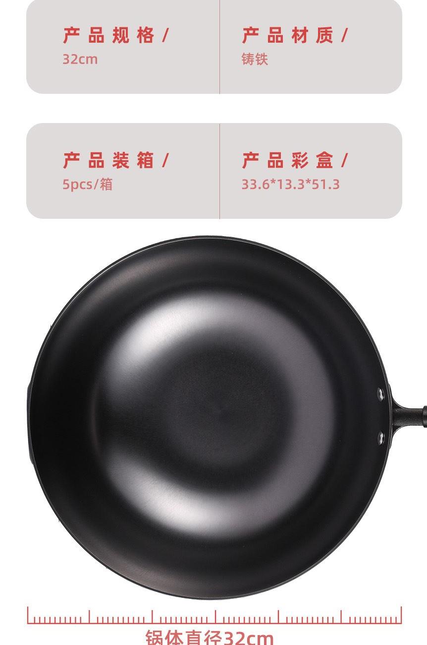 规 格:32cm 材 质:铸铁 彩盒尺寸:L33.6*W13.3*H51.3CM 1、优质铸铁一体成型,坚固耐磨不易变形,只要日常使用得当,就能越用越润、不易粘锅,使用寿命远超普通锅具; 2、铸铁材质导热均匀、蓄热强,能更快形成锅气,爆炒、炖煮、煎制都能让食材口感更入味; 3、铸铁材质无涂层设计,烹饪中还能融入铁元素,长期使用更健康。