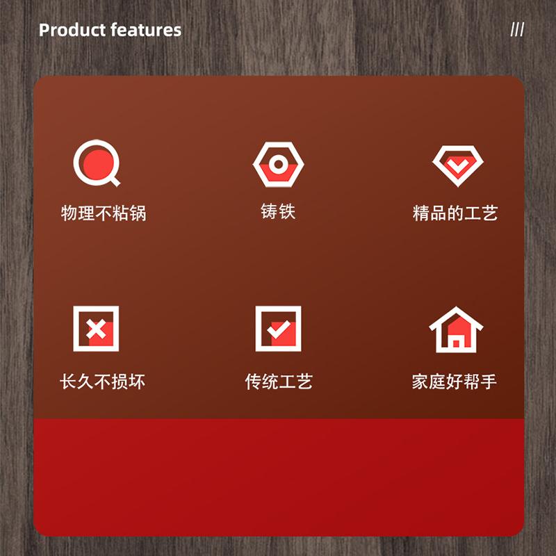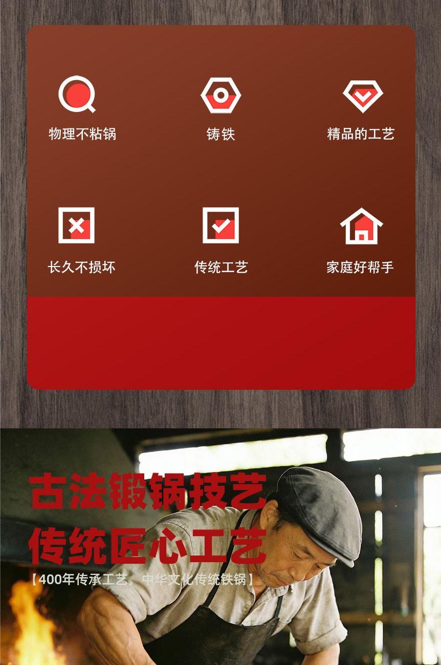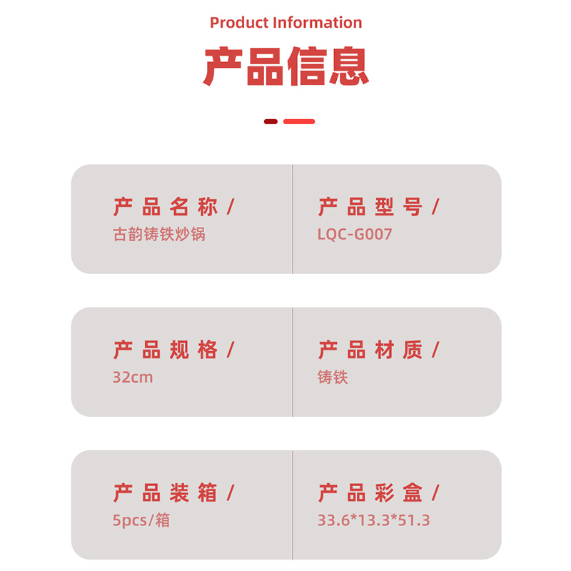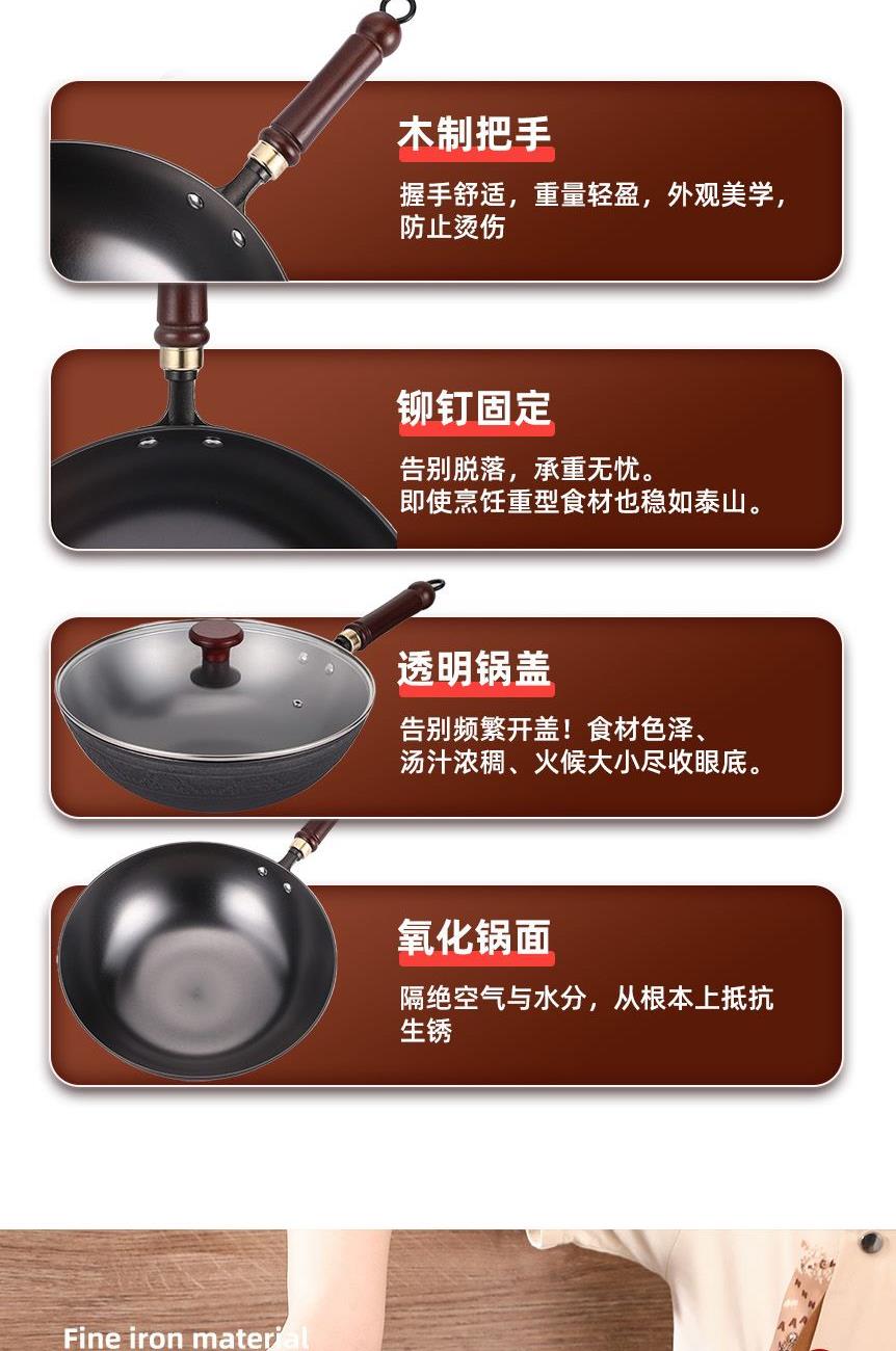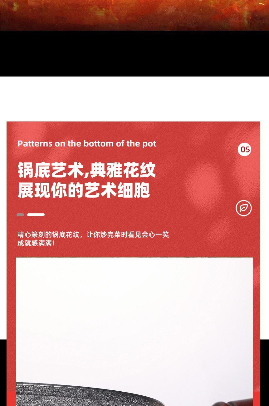 规 格:32cm 材 质:铸铁 彩盒尺寸:L33.6*W13.3*H51.3CM 1、优质铸铁一体成型,坚固耐磨不易变形,只要日常使用得当,就能越用越润、不易粘锅,使用寿命远超普通锅具; 2、铸铁材质导热均匀、蓄热强,能更快形成锅气,爆炒、炖煮、煎制都能让食材口感更入味; 3、铸铁材质无涂层设计,烹饪中还能融入铁元素,长期使用更健康。