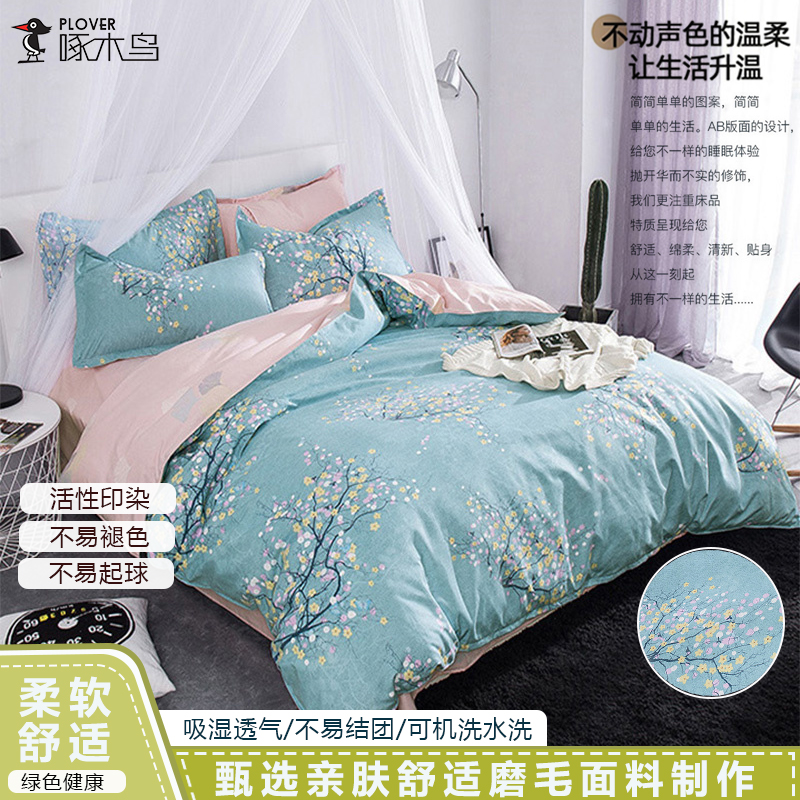 啄木鸟PLOVER澳绒磨毛四件套-春暖花开1.8M/1.5M