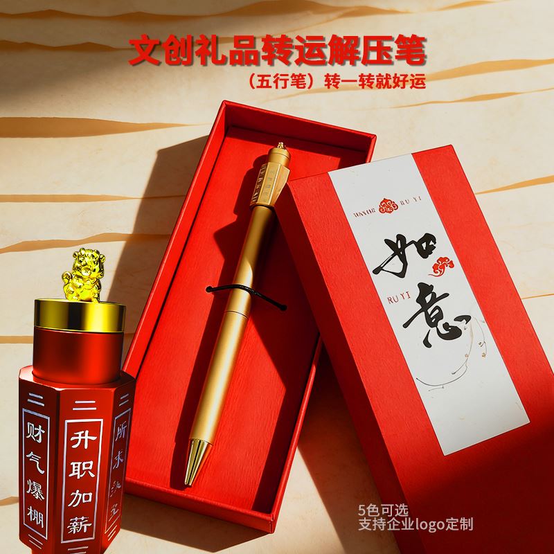 转运解压笔 五行笔 颜色:红色、黑色、蓝色、灰色、金色 材质:金属 配置:礼盒、手提袋 适用场景:年会、商务活动、展会纪念、学校、教育结构随手礼 、解压礼品