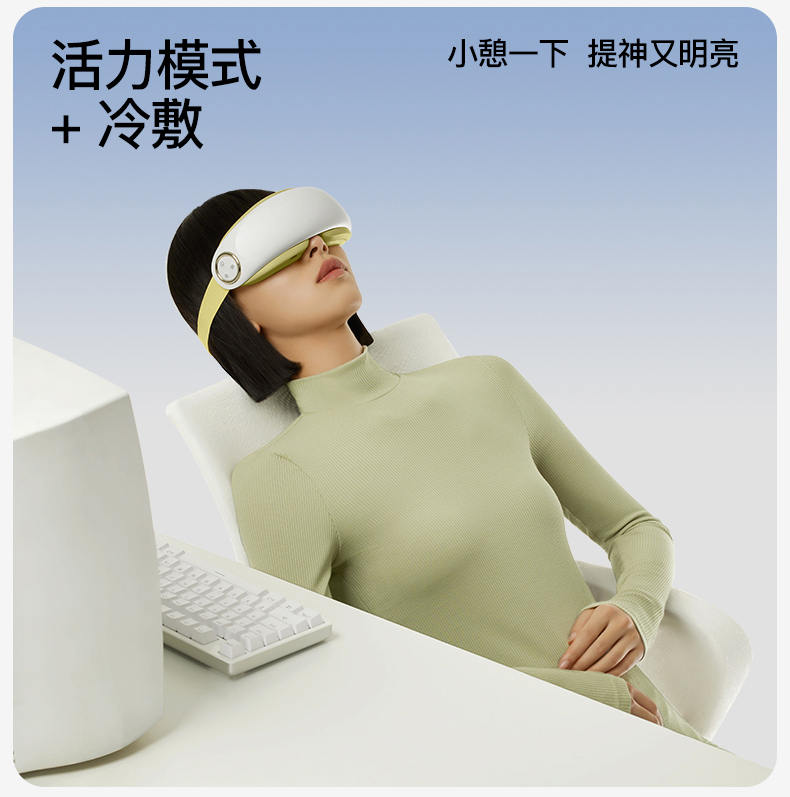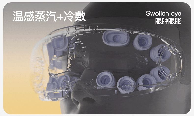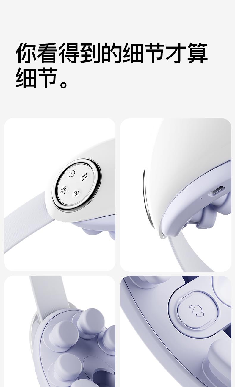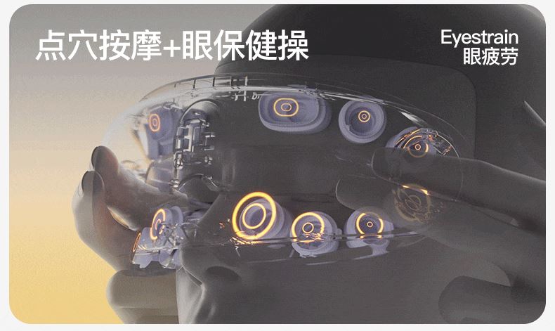● 产品型号:E4pro ● 产品尺寸: 183*77*81mm ● 产品材质:ABS/PC/ 硅胶/布 带 ● 电池容量: 1800mAh ● 水箱容量: 6.5ml ● 3小时 ● 90-120分钟(档位大小喷雾时长而定) 产品卖点: • 采用超声微米雾化技术 ,每秒喷出10万个水分子, 瞬间包裹眼周围,给眼干眼涩直接补水。 •14个点对穴的按摩头,模拟真人指压按摩,加上3D镂空无压贴设计,佩戴不挑无感脸型不压眼球。 •38-45°C蒸汽热敷,通过上下眼周发热让热力覆盖到全眼, 减轻疲劳,快速舒缓眼干、 眼涩眼疲劳;眼上热敷眼眶,眼下热敷眼袋,解决眼肿眼胀,解决眼干眼涩,放松。 适用人群:长期用眼、戴隐形/美瞳、近视、加班一族、学生党、考研党、游戏屏幕眼、长途开车。 适用场景:公司午休,出差旅行,晚上躺床、节日送礼。
