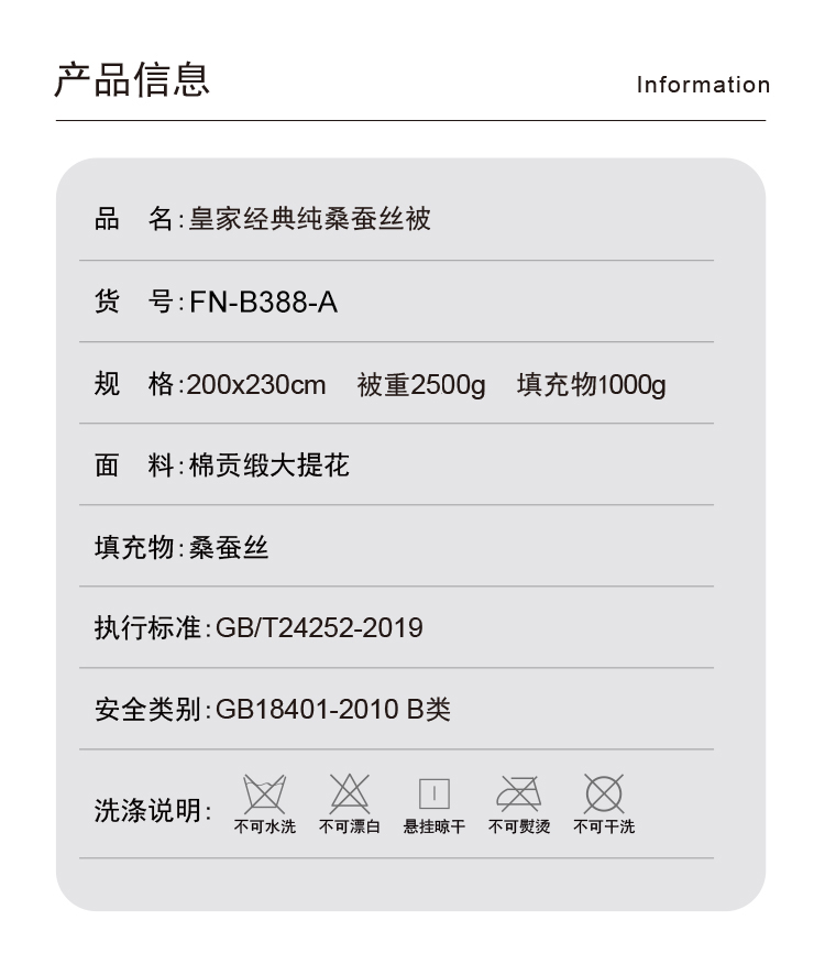 芳恩FN-B388-A皇家经典纯桑蚕丝被200x230cm