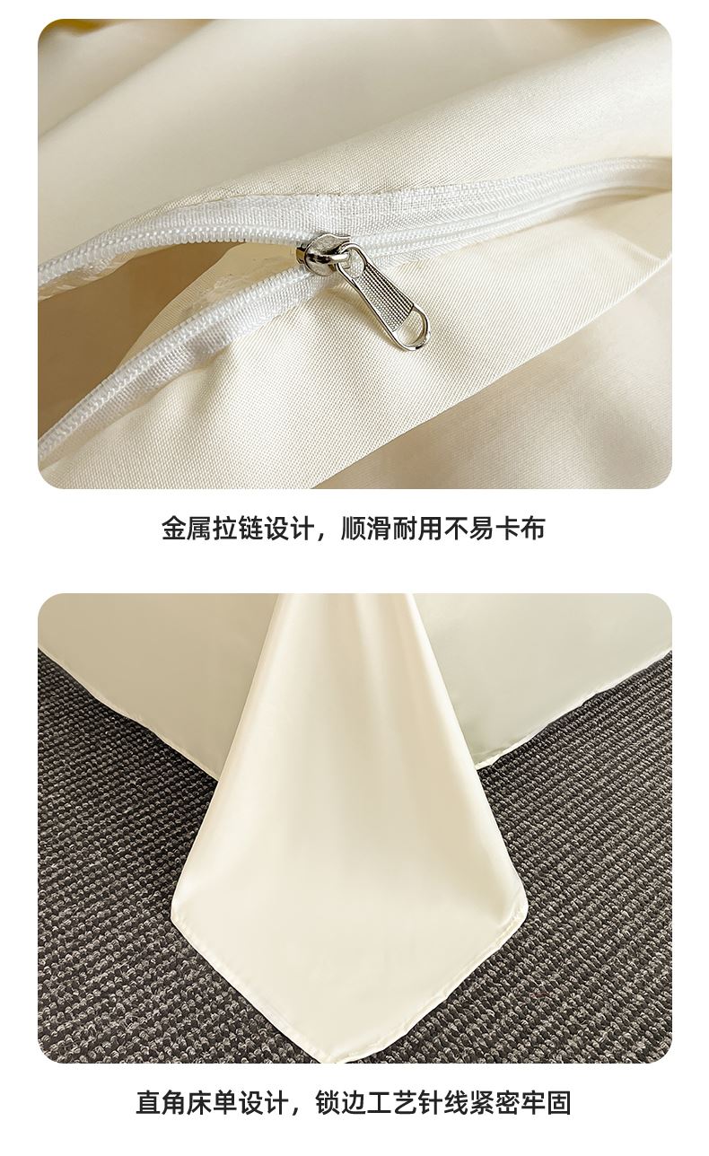 规格:被套200*230cm*1床单245*245cm*1枕套48x74cm*2 面料:聚酯纤维(水洗天丝) 花色:雅蝶-白、雅蝶-薄荷绿、雅蝶-粉、雅蝶-灰、雅蝶-蓝 闭眼感受 丝滑触感 细腻如丝 柔软若云的触感 仿佛能穿越时空 耐洗耐用 贴身丝滑 水洗天丝面料 AB版设计 活性印染 可机洗水洗 不易起球 水洗天丝快速吸收汗液和水分 导湿快 性能好 触感清爽不粘腻 贴肤沁凉不冰 空调房也能使用