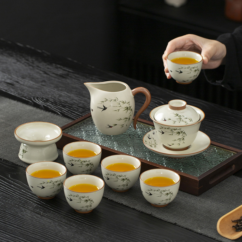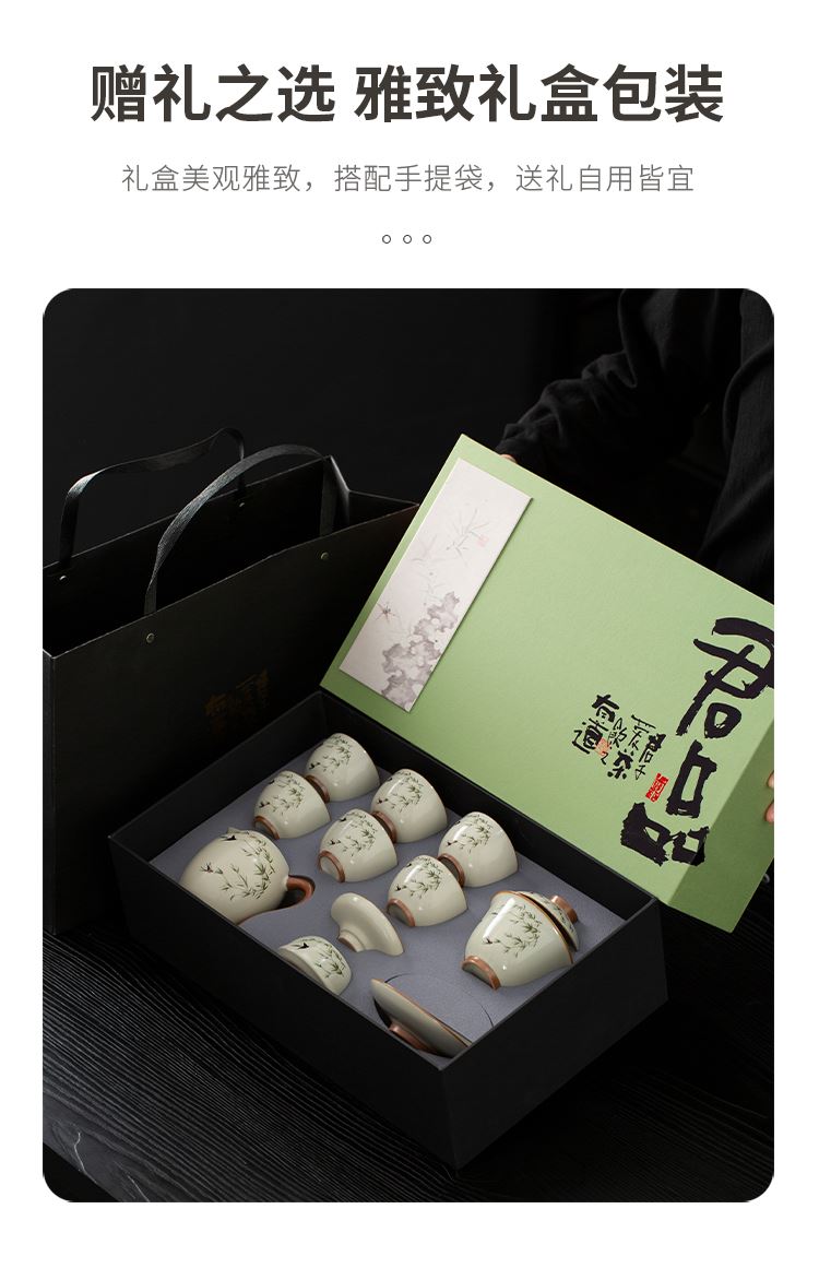 云博陶瓷汝窑燕衍春10头茶具盖碗款套装中国风商务礼品伴手礼