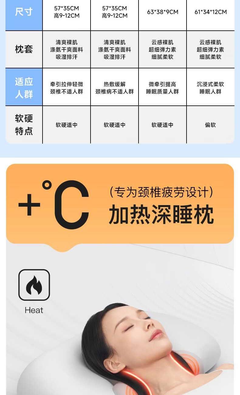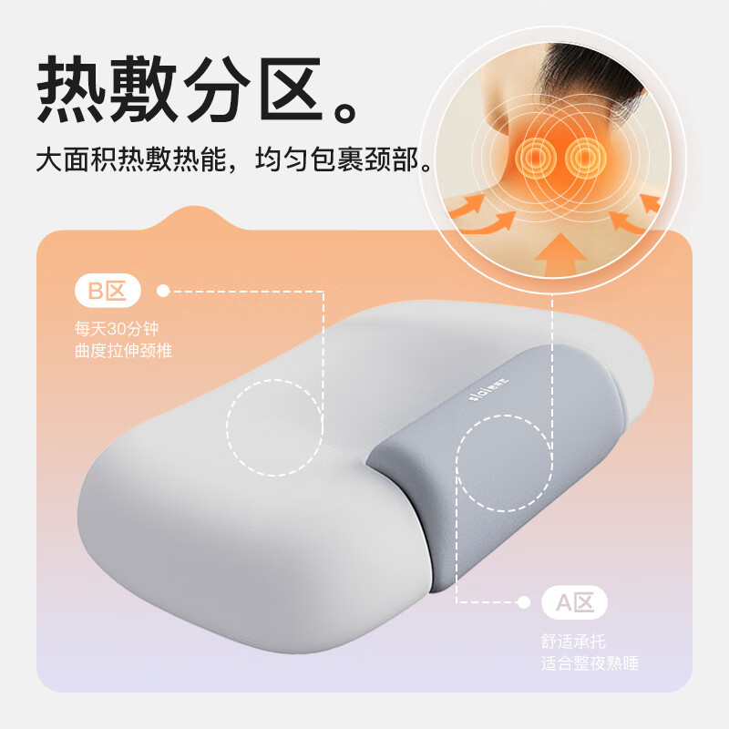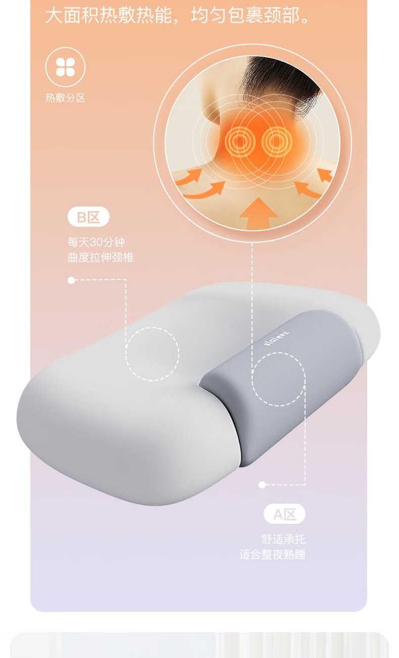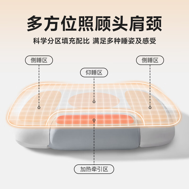【科学分区】满足多种睡姿及感受。 【面料柔弹】面料升级,柔弹舒适。 【双向可用】一侧可加热拉伸,一侧熟睡。 【3档控温】高温65°像热毛巾一样舒服。 【人体工学设计】有效减缓压力, 自然深睡。