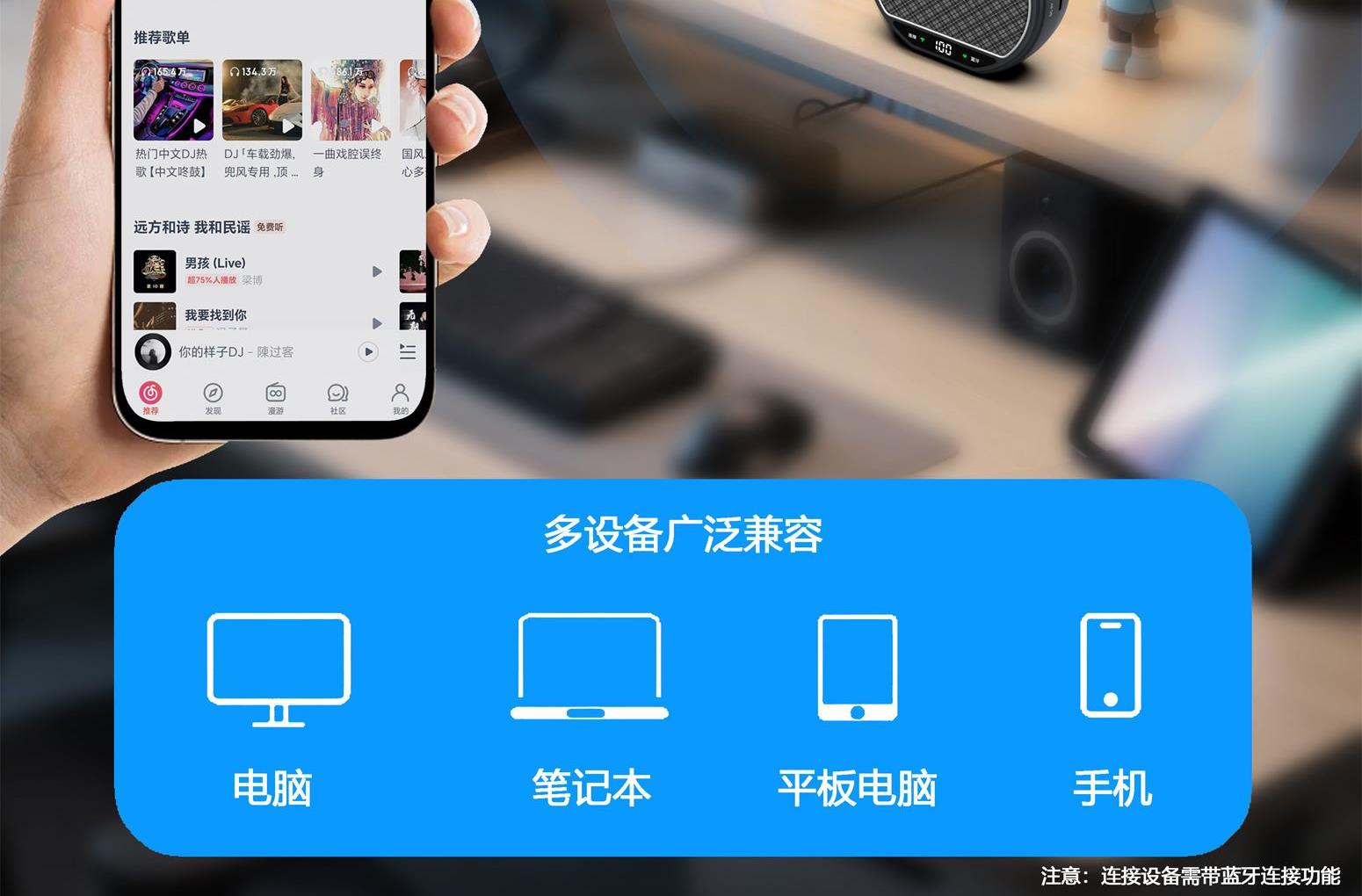 支持电量显示,支持 U 盘音源输入(只支持 MP3格式)