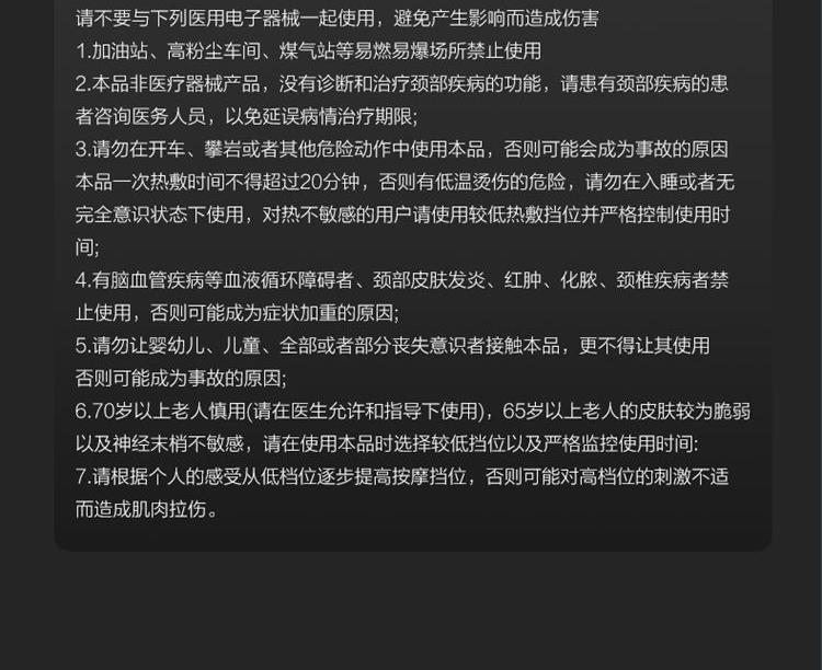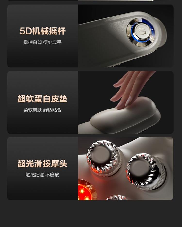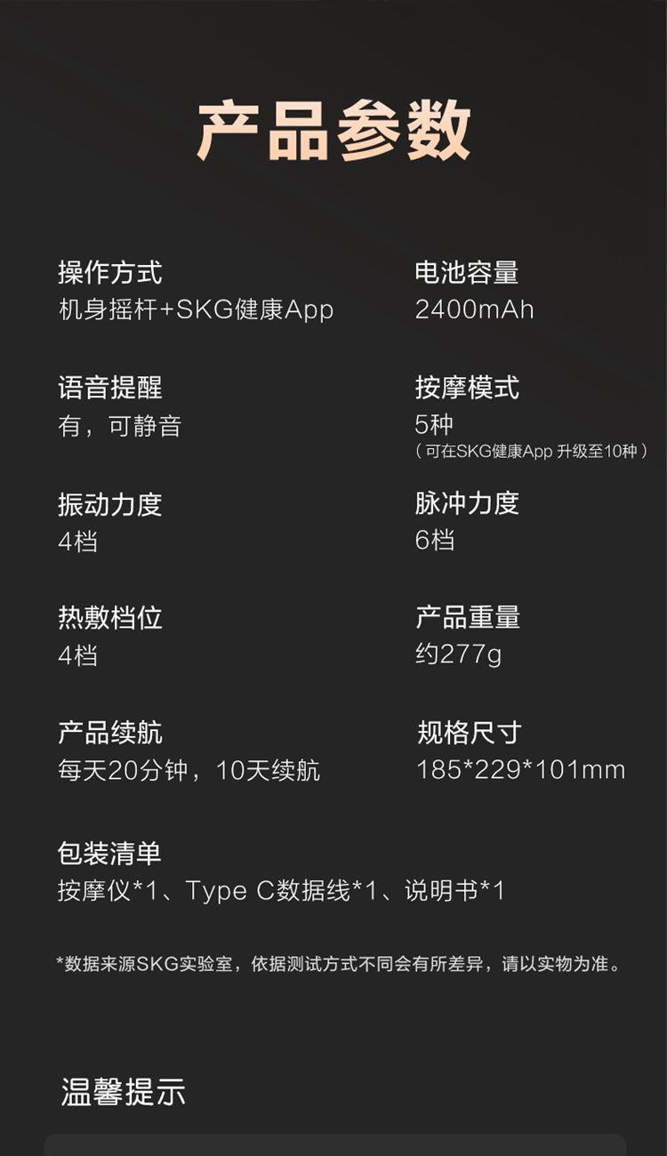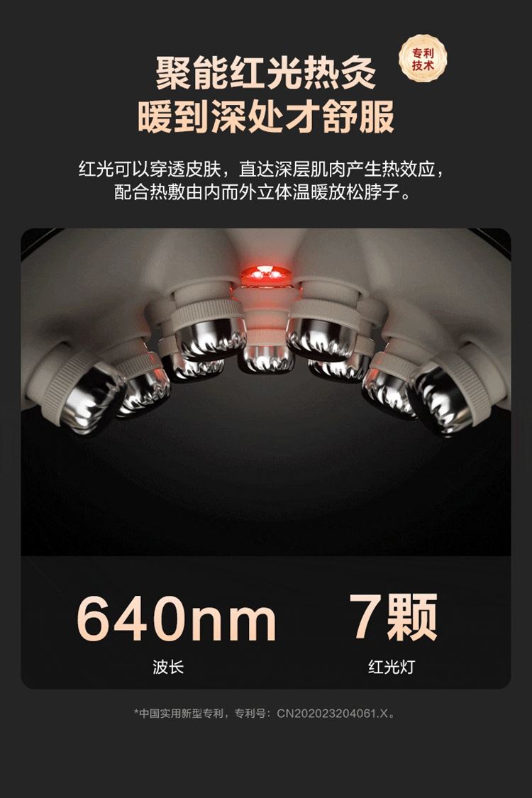产品描述: 同频共振效果,百种按摩体验 升级nano按摩头-震感更强 按摩面积升级33% 中频4-6KHz深度按摩 振动-7krpm偏心轮钨钢马达 红光-7颗聚能红光灯珠 热敷-4组热敷膜 调频技术 皮革的纹理 产品参数: 机身材质:ABS/PC/硅胶/蛋白皮/PU皮/锌合金/PET/不锈钢304材质 电源电压:5V/1A 充电接口:Type-C 控制方式:机身摇杆+APP智控 语音播报:有/可静音 电池容量:2400mAh锂电池 续航时间:7天(3.5小时) 按摩时间:20分钟 按摩模式:10种 6档脉冲/4档振动 热敷档位:4档热敷+热灸 温度挡位:36/38/40/42℃ 单台毛重/净重:0.689/0.277kg 彩箱尺寸:179*221*96mm