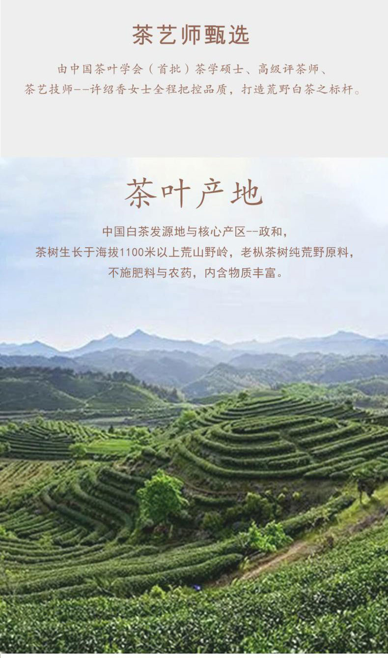 1.由公司茶学硕士、评茶师和茶艺师等组成的专家级团队,全程把控制作工艺,重磅打造标杆级荒野白茶。