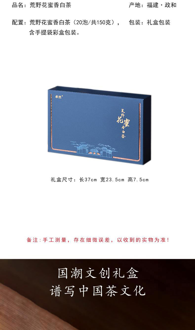 配 置:荒野白茶独立袋泡20泡(共150克),含手提袋双层抽拉彩盒。