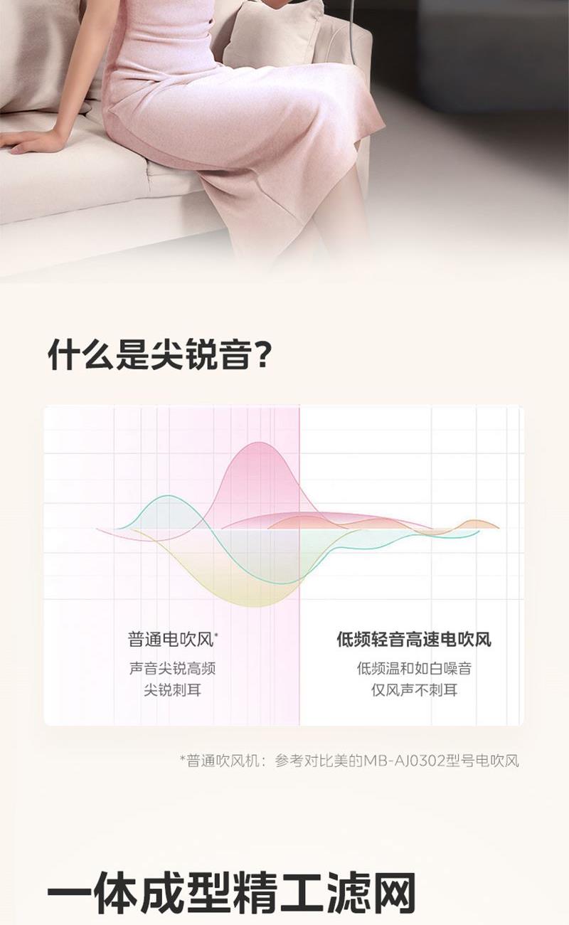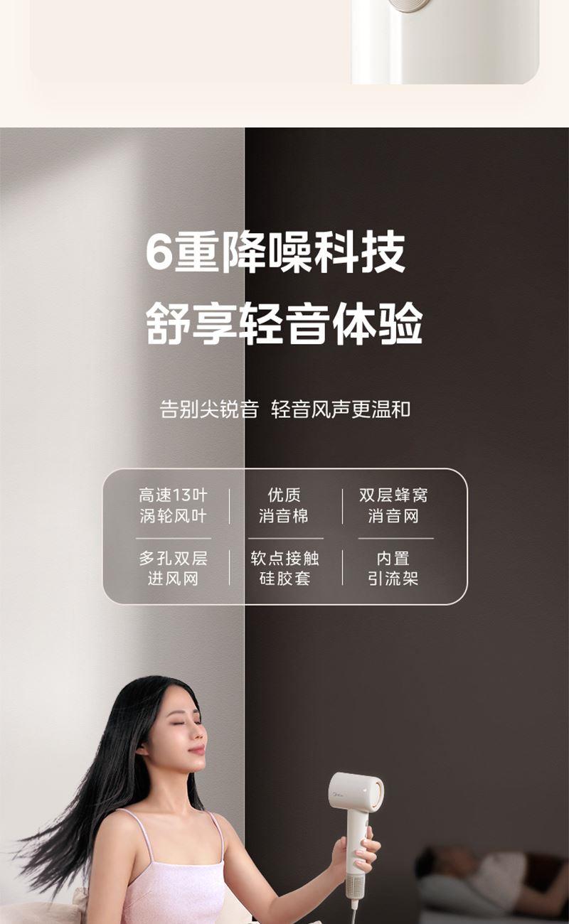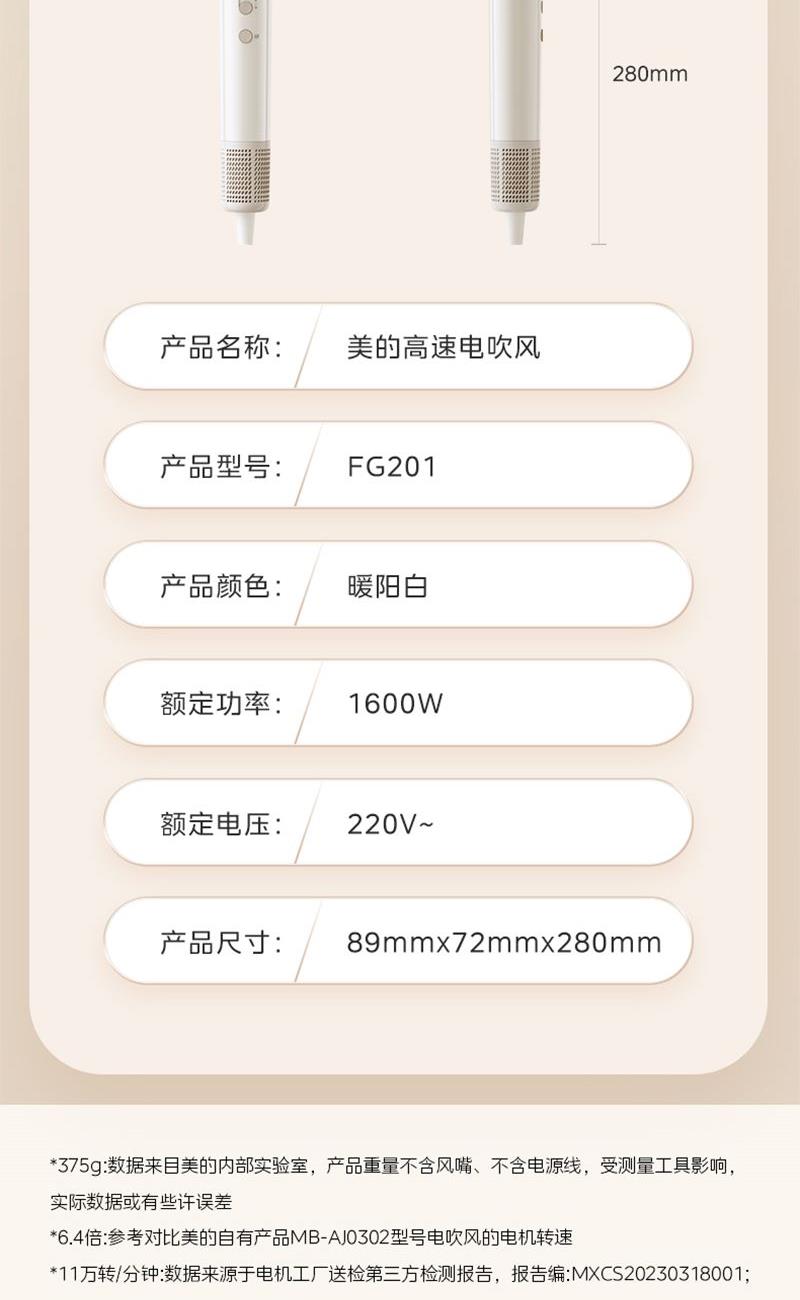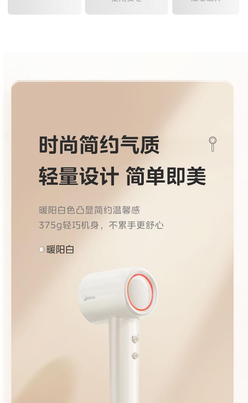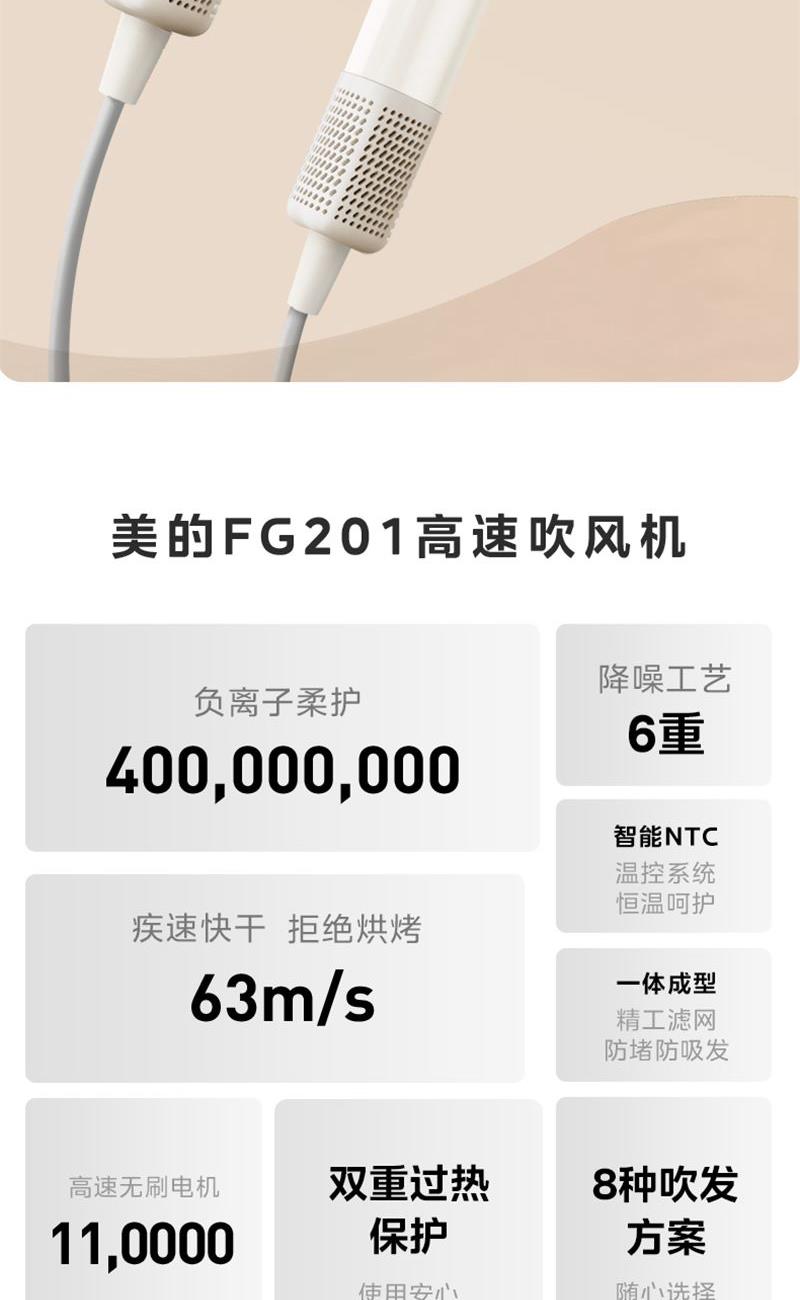 美的高速大功率速干家用1600W吹风筒FG201暖阳白